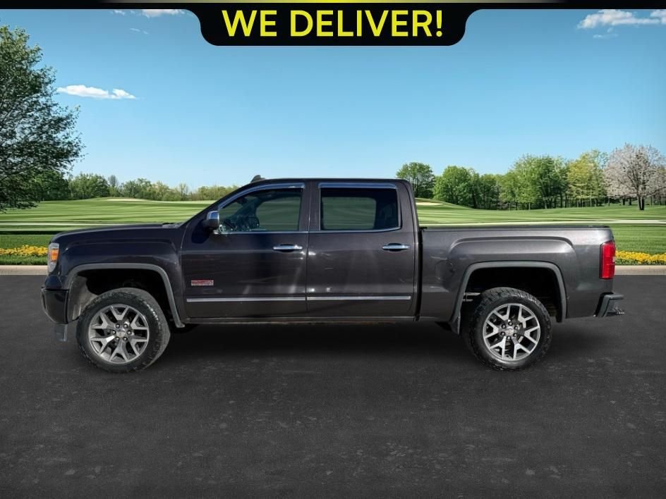 Recent Arrival! 2015 GMC Sierra 1500 SLT Grey 4WD 6-Speed Automatic Electronic with Overdrive EcoTec3 5.3L V8 Odometer is 47726 miles below market average! 6-Speed Automatic Electronic with Overdrive, 4WD, Black Leather. Trailering Equipment, 6-Speed Automatic Electronic with Overdrive, 4WD, Black Leather, 10-Way Power Driver's Seat Adjuster, 110-Volt AC Power Outlet, 150 Amp Alternator, 3.08 Rear Axle Ratio, 4-Wheel Disc Brakes, 4.2" Diagonal Color Display Driver Info Center, 40/20/40 Front Split Bench Seat, 6 Speakers, ABS brakes, Adjustable pedals, Air Conditioning, Alloy wheels, AM/FM radio: SiriusXM, Auto-dimming door mirrors, Auto-Dimming Inside Rear-View Mirror, Auto-dimming Rear-View mirror, Automatic temperature control, Auxiliary External Transmission Oil Cooler, Bodyside moldings, Brake assist, Bumpers: chrome, CD player, Chrome Bodyside Moldings, Chrome Door Handles, Chrome Front Bumper, Chrome Grille Surround, Chrome Mirror Caps, Chrome Rear Bumper, Color-Keyed Carpeting w/Rubberized Vinyl Floor Mats, Compass, Deep-Tinted Glass, Delay-off headlights, Driver & Front Passenger Illuminated Vanity Mirrors, Driver door bin, Driver vanity mirror, Dual front impact airbags, Dual front side impact airbags, Dual-Zone Automatic Climate Control, Electric Rear-Window Defogger, Electronic Autotrac Transfer Case, Electronic Stability Control, Emergency communication system: OnStar Directions & Connections, Exterior Parking Camera Rear, EZ Lift & Lower Tailgate, Front anti-roll bar, Front Center Armrest w/Storage, Front dual zone A/C, Front fog lights, Front Frame-Mounted Black Recovery Hooks, Front Halogen Fog Lamps, Front reading lights, Front wheel independent suspension, Fully automatic headlights, Garage door transmitter: HomeLink, Heated door mirrors, Heated Driver & Front Passenger Seats, Heated front seats, Heavy Duty Suspension, Heavy-Duty Rear Locking Differential, Illuminated entry, Leather Appointed Seat Trim, Leather Wrapped Steering Wheel w/Cruise Controls, LED Cargo Box Lighting, Low tire pressure warning, Manual Tilt Wheel Steering Column, Memory seat, Occupant sensing airbag, OnStar 6 Months Directions & Connections Plan, OnStar w/4G LTE, Outside temperature display, Overhead airbag, Overhead console, Panic alarm, Passenger door bin, Passenger vanity mirror, Power Adjustable Pedals, Power door mirrors, Power driver seat, Power Folding & Adjustable Heated Outside Mirrors, Power passenger seat, Power steering, Power windows.