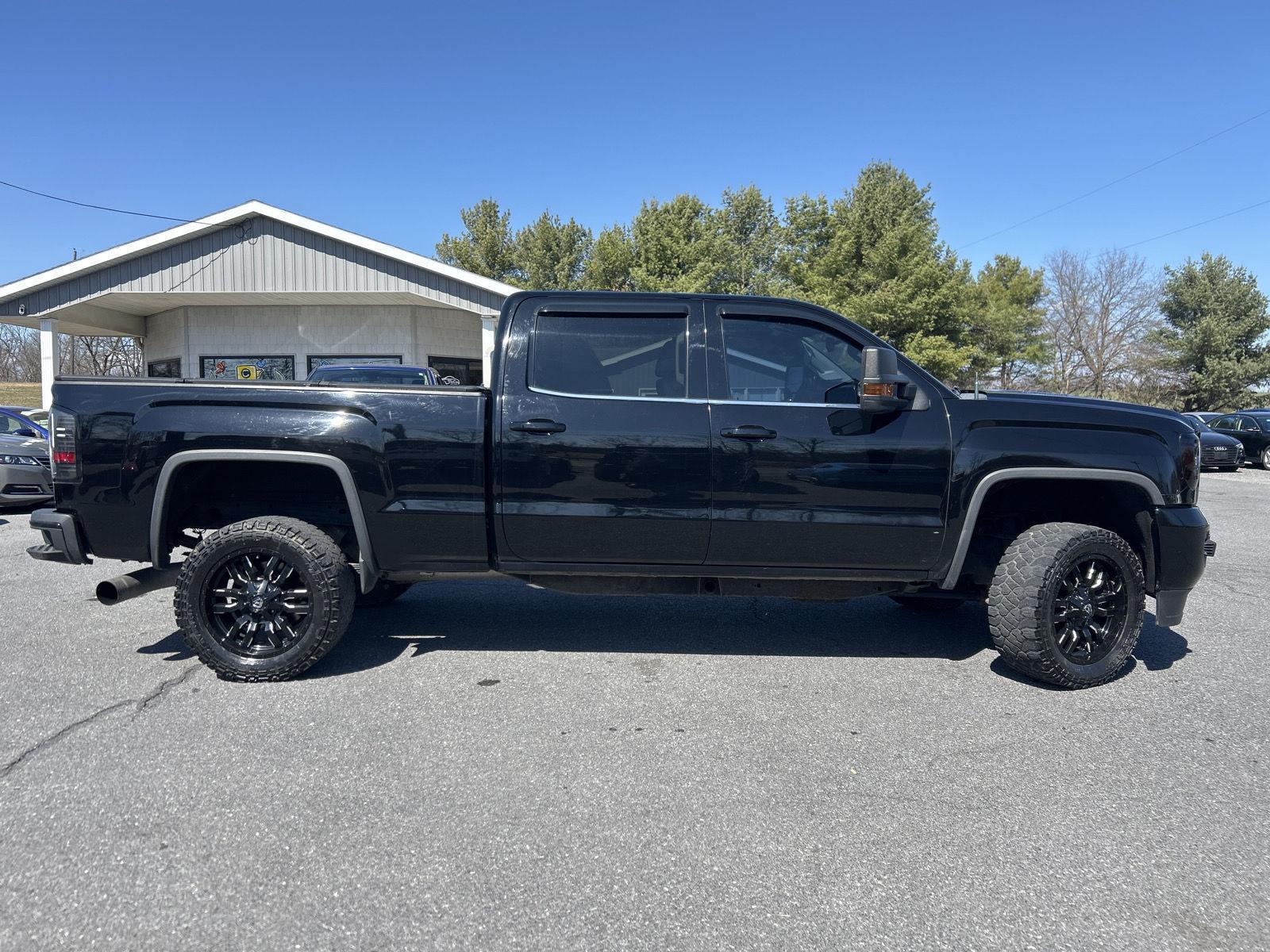 Thanks for checking out McCoy Auto Sales of Chambersburg, Pa. This Onyx Black 2015 GMC Sierra 2500HD Denali is ready to hit the road with you! This capable truck has a 6.6L V8 Duramax with an Allison 6 speed automatic and 4 wheel drive! This truck has been tastefully modified with some updated tail lamps and Rigid fog lamps, it has been lifted, and sits on 20" Fuel wheels with 33" off road tires! Included features are power, heated and cooled seats, leather, a sunroof, tri fold tonneau cover, backup camera, touch screen audio system, GPS navigation, SiriusXM available, and more. This is a locally owned vehicle, stop in, take it for a spin then make it yours, it would be a great addition to your garage!! At McCoy Auto Sales you'll find a great selection of quality hand-picked vehicles to choose from at affordable prices! We price our cars based on the market and sell them quickly. We are a no hassle, no games dealership and even though we feel our prices are competitive, we are here to sell them so if we're close don't hesitate to make a reasonable offer. We offer multiple financing options, take trades and will do our best to make sure buying a vehicle is as simple as it should be!