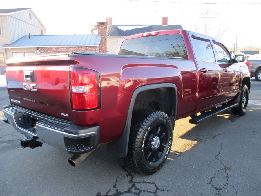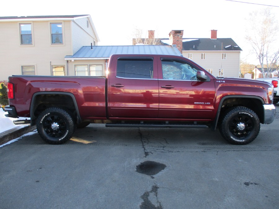 This 2015 GMC Sierra 2500HD available WiFi is available at Suffield Auto LLC in Suffield, Connecticut. It features a Sonoma Red Metallic exterior with a Jet Black interior and is equipped with a 6L 8-cylinder engine and automatic transmission. The vehicle is a pre-owned, four-wheel drive crew cab with 153.7" SLE, available for sale in Suffield, Connecticut.