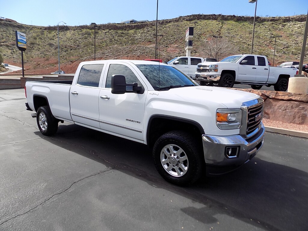 2015 GMC Sierra 2500 SLT 4WD with 6.6L Duramax Diesel and Allison Transmission! Long Bed with B&W Gooseneck Hitch! Drive home a powerful, reliable 2015 GMC Sierra 2500 SLT with the stout 6.6L V8 diesel and four-wheel drive – built for towing, hauling, and long highway runs. This SLT trim combines rugged capability with upscale comfort and tech features you'll use every day. Find this truck in St George, UT, priced to move – the best price available locally. Well-maintained and inspected for immediate driving confidence, this GMC Sierra 2500 SLT is ideal for contractors, outdoor enthusiasts, and anyone needing dependable diesel performance with refined amenities. Competitive financing options available and transparent vehicle history. Stop searching – this 2015 GMC Sierra 2500 SLT in St George, UT, offers the best price and the capability you need. Contact us to schedule a test drive and see firsthand why this diesel truck stands out.