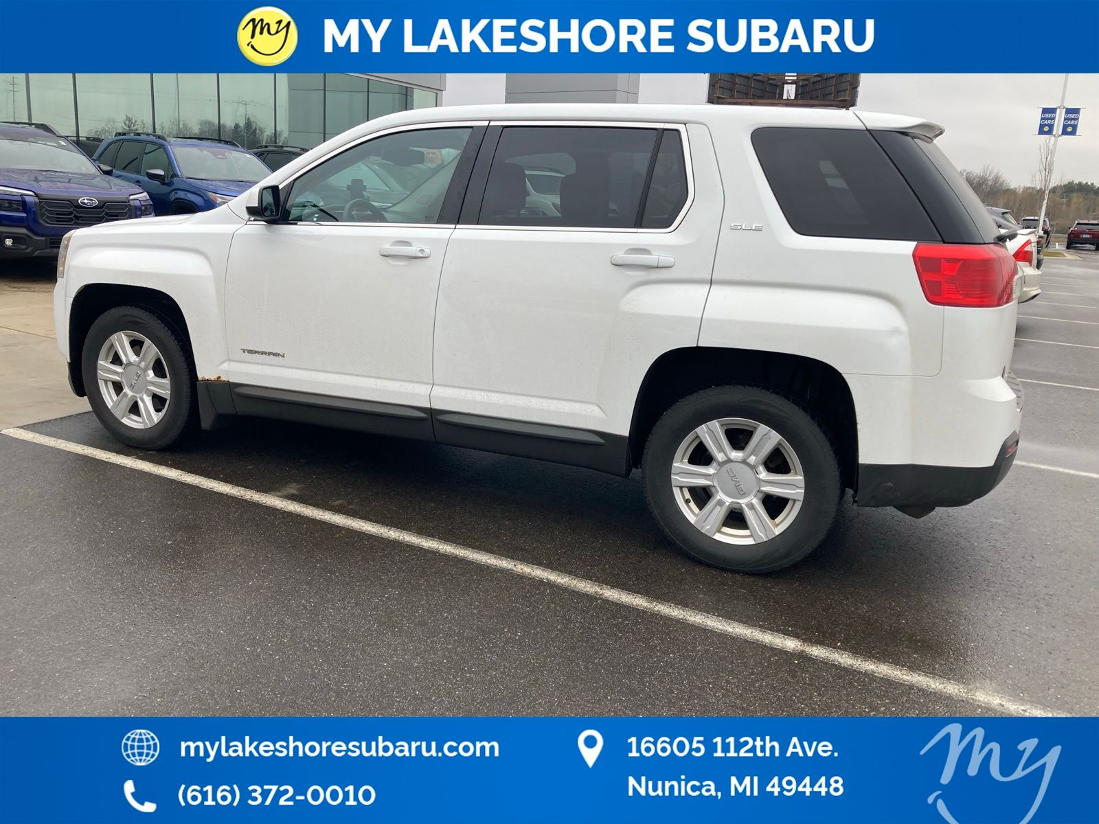 AWD, All wheel drive, Local trade. Summit White 2015 GMC Terrain SLE-1 AWD 6-Speed Automatic 2.4L 4-Cylinder SIDI DOHC VVT. My Lakeshore Subaru is your #1 choice in Michigan to get the best price on used vehicles and best value for your trade. The My Lakeshore Subaru team is ready to provide you with a world-class experience, ensuring that you find the perfect vehicle that fits all your needs. Every vehicle has been through a full safety inspection completed by certified technicians and fully detailed. Recent Arrival! 20/29 City/Highway MPG.