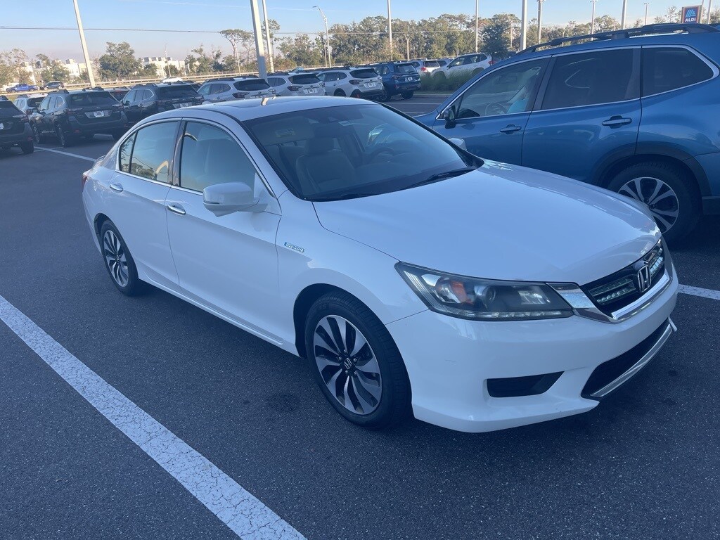 2015 Honda Accord Hybrid EX-L 2.0L 4-Cylinder i-VTEC 2.0L 4-Cylinder i-VTEC w/ Leather Seating and Sunroof. CARFAX One-Owner. Priced below KBB Fair Purchase Price! Awards: 2015 KBB.com Brand Image Awards Kelley Blue Book Brand Image Awards are based on the Brand Watch(tm) study from Kelley Blue Book Market Intelligence. Award calculated among non-luxury shoppers. For more information, visit www.kbb.com. Kelley Blue Book is a registered trademark of Kelley Blue Book Co., Inc. Conveniently located less than 3 miles from I-4 and Downtown Orlando. Sport Subaru proudly serves the pre owned Subaru and used car needs of St. Cloud FL, Sanford FL and Altamonte Springs, Orange County, Seminole County and Central Florida. If you are not able to find a used car in Orlando that is perfect for your needs and your budget, contact our team to help you conduct an in depth search of available inventory in the Central Florida area. Our Finance Department will help you get a great rate from a variety of lending institutions.
