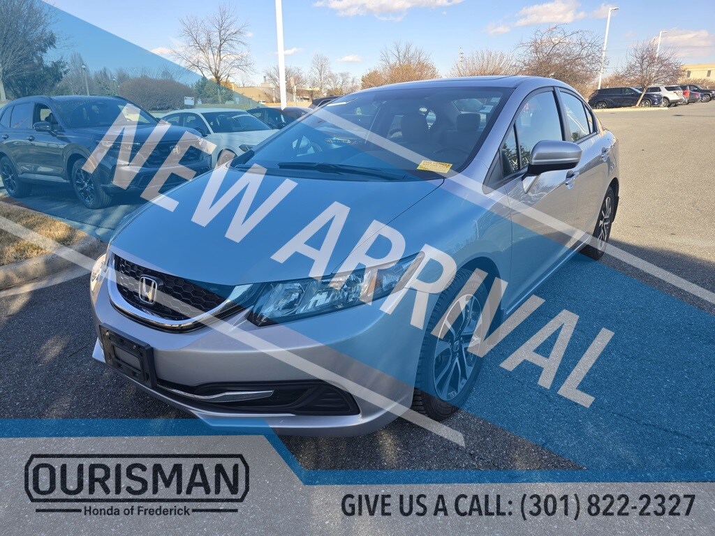Ourisman Honda of Frederick is proud to present the The 2015 Honda Civic EX. The 2015 Honda Civic EX offers a smart mix of style, efficiency, and everyday comfort with some impressive features for its class. The exterior sports 16-inch alloy wheels, a power moonroof with tilt feature, and body-colored side mirrors with integrated turn signals, giving it a sleek and refined profile. Its compact shape is aerodynamic and modern, with subtle curves that still hold up well today. The Civic EX is powered by a 1.8-liter 4-cylinder engine that delivers 143 horsepower and 129 lb-ft of torque, paired with a Continuously Variable Transmission (CVT) for smooth and fuel-efficient driving. It's a great option for daily commuting with excellent fuel economy and a reputation for reliability. The EX trim adds convenience and tech with features inside like a 7-inch touchscreen display, Honda's LaneWatch blind spot camera, Smart Entry with push-button start, and automatic climate control. The interior is practical yet polished, offering quality materials and a comfortable layout for both driver and passengers. You'll also get Bluetooth HandsFreeLink, a 6-speaker audio system, and a rearview camera for added peace of mind. If you're looking for a ride that blends sporty looks with everyday practicality, the 2015 Honda Civic EX is definitely worth a closer look.