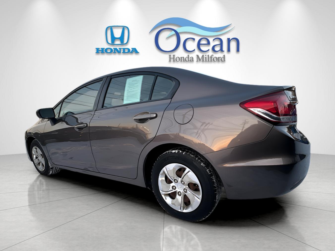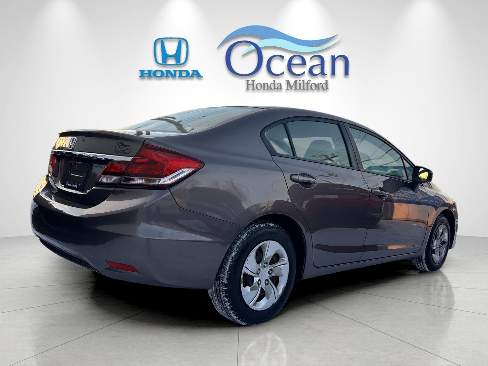 This clean vehicle was recently acquired to our store here in Milford! This 2 Owner Personal Vehicle was acquired locally and maintained on time with regular documented service. The 2015 Honda Civic LX balances comfort, efficiency, and technology. The Beige interior and efficient 1.8L i-VTEC with CVT make everyday driving easy. We just completed our Victory 182 point inspection, performed a maintenance inspection and battery test, topped off all fluids, and finished a full interior and exterior detail. Two keys included. Recent service records show oil and filter changed and brake fluid flushed. This beauty has had and passed an extensive Victory 182 point inspection conducted by our factory certified technicians. Buy with confidence. Every Ocean Honda Pre Owned vehicle includes a 90 day or 3,000 mile comprehensive warranty on top of any remaining factory coverage.