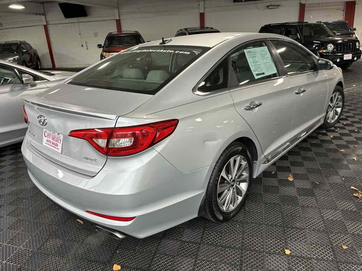 Our 2015 Hyundai Sonata Sport Sedan in Symphony Silver is a sensibly stylish ride! Motivated by a 2.4 Liter 4 Cylinder that produces 185hp paired with an innovative 6 Speed Automatic transmission. This Front Wheel Drive sedan will impress you while rewarding you with up to 37mpg on the highway! The striking exterior was created using our signature Fluidic Sculpture 2.0 design and is accented by distinct alloy wheels, a rear lip spoiler, and a sport appearance front grille designed to make you smile. Stepping into the Sonata Sport cabin, enjoy the class-leading space and many premium soft-touch materials that make you feel at home. Sit in the 8-way power driver's seat and appreciate the premium leather heated front seats and steering wheel-mounted audio controls for Bluetooth® and cruise controls. Plug in your devices with iPod/USB and auxiliary input jacks paired with a premium audio system controlled by a 5-inch color touchscreen and even a backup camera to maximize your confidence while driving! Of course, our Hyundai would not be complete without a vast array of innovative safety features. Seven airbags, including a driver's knee airbag, a Vehicle Stability Management System, a Tire Pressure Monitoring System, and front/rear crumple zones, are just a few features surrounding you and your passengers in this Sonata Sport sedan. Save this Page and Call for Availability. We Know You Will Enjoy Your Test Drive Toward Ownership!