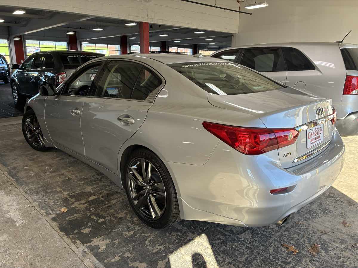Offering top-shelf amenities and performance to match, our 2015 INFINITI Q50 Premium AWD Sedan is elegant in Liquid Platinum. Motivated by a 3.7 Liter V6 which produces 328hp tethered to a responsive 7 Speed Automatic transmission for incredible passing power. This All Wheel Drive sedan sends you to 60mph in less than 6 seconds and results in nearly 28mpg on the highway. The sleek design of the Q50 Premium features sculpted body panels, broad shoulders, and an aggressive stance. The innovation carries through to the elegant Premium interior that has been intuitively designed with a sunroof, heated seats, and a fully customizable digital environment that saves audio, climate, and navigation settings for each intelligent key. You'll love INFINITI's InTouch system, which features dual display screens and the Bluetooth hands-free phone system with a hands-free text messaging assistant. Crank up the high-definition Bose surround-sound system with available satellite radio, grip the heated steering wheel, and enjoy turning heads in this spectacular machine. A host of advanced safety features are on board from INFINITI to protect you; a sophisticated airbag system, zone body construction with front/rear crumple zones, and vehicle dynamic control, just to name a few. Reward yourself with maximum driving pleasure today in our Q50 Premium sedan. Save this Page and Call for Availability. We Know You Will Enjoy Your City Select Auto Sales Test Drive Towards Ownership!