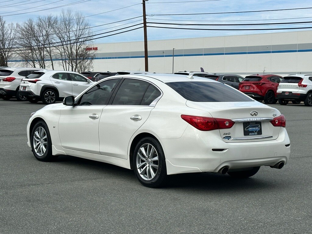 Moonlight White 2015 Infiniti Q50 Premium AWD 7-Speed Automatic with Manual Shift 3.7L V6 DOHC 24V New Arrival. Recent Arrival! Odometer is 7290 miles below market average! 19/27 City/Highway MPG. The 2015 Infiniti Q50 strengths are its handling and power, its interior luxury and comfort, and its very reasonable price when compared to other luxury brands. It’s a triple threat that’s hard to top.