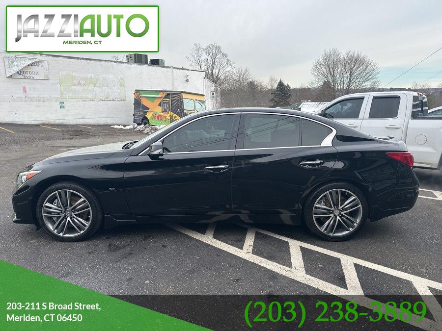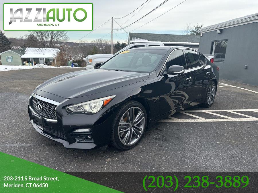2015 INFINITI Q50 4dr Sdn Sport AWD, available for sale in Meriden, Connecticut. Black Obsidian exterior with Stone Leather interior. 3.7 V6 Cylinder Engine and automatic transmission. All wheel drive and a full range of features for comfort, safety, and convenience.