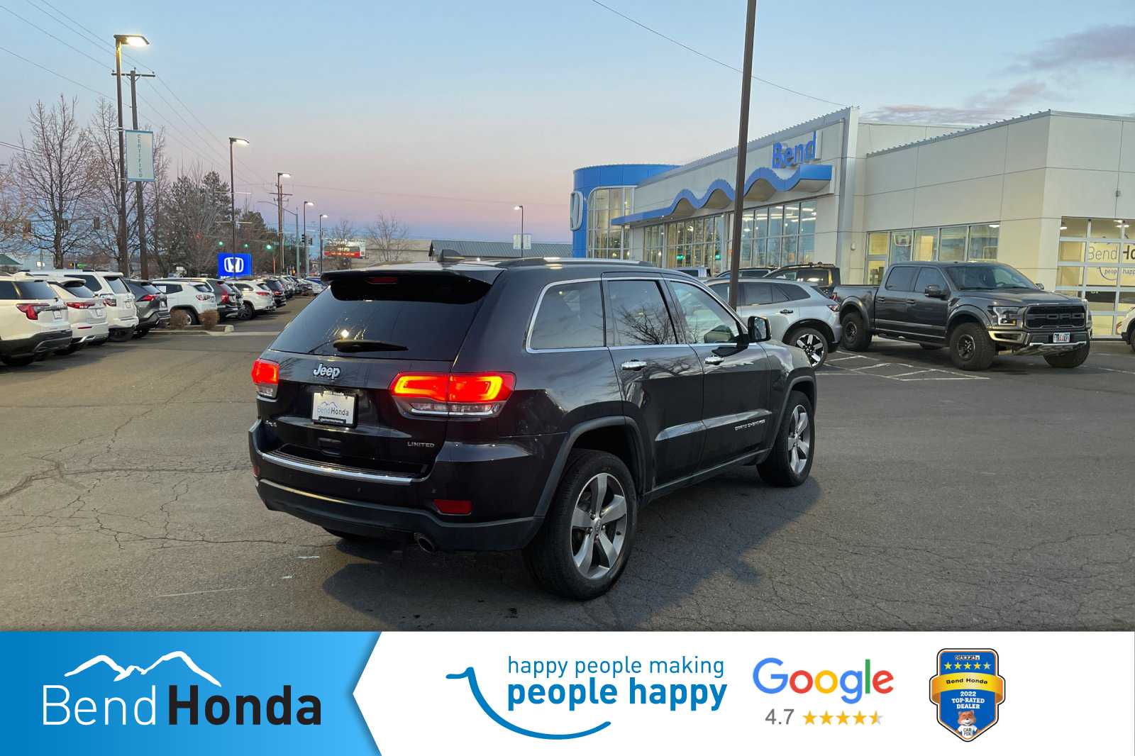 Maximum Steel Metallic Clearcoat 2015 Jeep Grand Cherokee Limited 4WD 8-Speed Automatic 3.6L V6 24V VVT. At Bend Honda, we live our slogan every day - Happy People Making People Happy! Clean CARFAX. Recent Arrival! Odometer is 56283 miles below market average! New windshield wipers installed, fresh air filters installed, fresh oil change performed, multi point safety and mechanical inspection performed by certified technician, interior and exterior professionally detailed for delivery, 4WD.