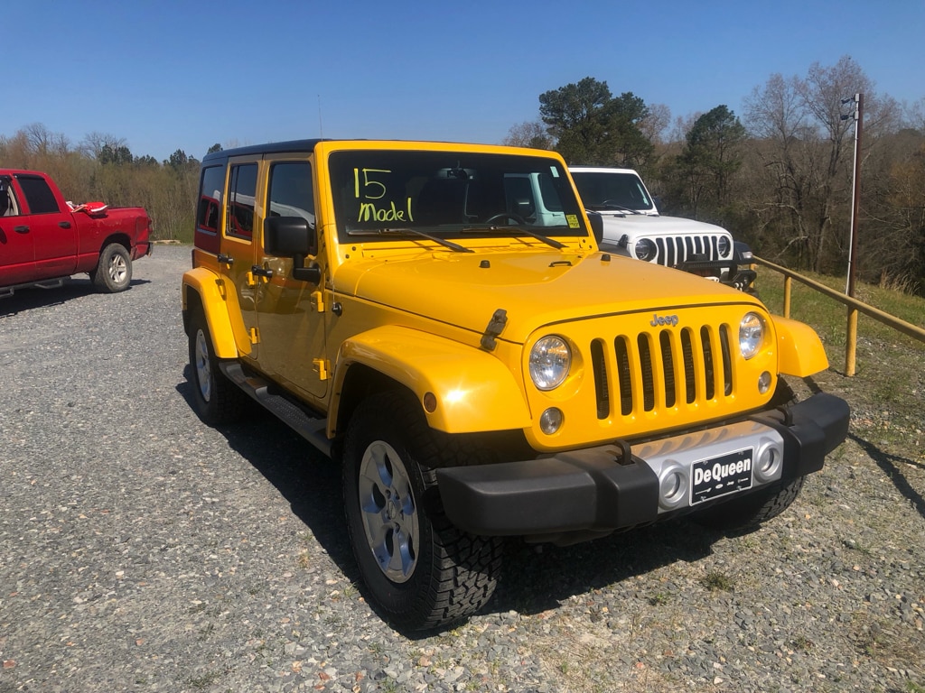 Looking for a rugged, capable SUV at the best price in De Queen, AR? This 2015 Jeep Wrangler Sahara delivers legendary off-road capability with comfort and convenience for daily driving. Powered by a V6 3.6L gasoline engine and 4WD, the Jeep Wrangler Sahara provides confident performance whether you're navigating city streets or exploring backcountry trails. The Sahara trim adds creature comforts and refined styling, making it an ideal choice for families and outdoor enthusiasts alike. Well-maintained and inspected, this Jeep Wrangler combines durable construction with practical technology and versatile cargo capacity. Why choose this Jeep Wrangler? Competitive pricing means you're getting the best price in the area, paired with a robust powertrain and trusted Jeep heritage. Located in De Queen, AR, this pre-owned 2015 Jeep Wrangler Sahara is ready for immediate test drives. Financing options are available to fit a variety of budgets. Don't miss your chance to own a versatile 4WD SUV with modern conveniences like Hands Free Bluetooth and Remote Start at the best price in De Queen. Contact us today to schedule a test drive and experience the Jeep Wrangler Sahara firsthand.