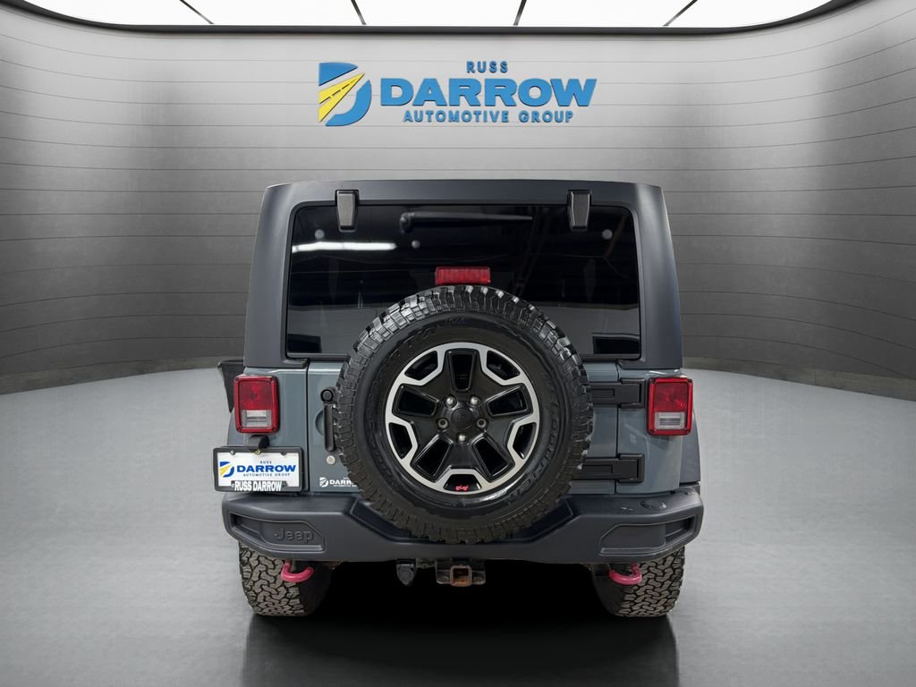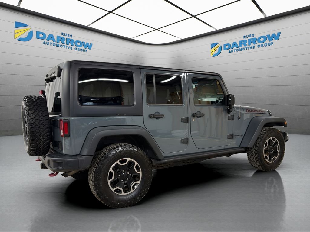 Recent Arrival! 2015 Jeep Wrangler Unlimited Rubicon Anvil Clear Coat 6-Speed Manual 3.6L V6 24V VVT 4WD, 6.5" Touch Screen Display, Air Conditioning with Auto Temperature Control, Air Filtering, Alpine 9-Speaker with All Weather Subwoofer, Auto-dimming Rear-View mirror, Black 3-Piece Hard Top, Brake assist, Compass, Delete Sunrider Soft Top, Driver Height Adjuster Seat, Freedom Panel Storage Bag, Front fog lights, Front Seat Back Map Pockets, Fully automatic headlights, GPS Navigation, Heated Front Seats, Humidity Sensor, Illuminated entry, Leather steering wheel, Leather Trimmed Bucket Seats, Outside temperature display, Performance Suspension, Premium Black Sunrider Soft Top, Radio: Uconnect 130 AM/FM/CD/MP3, Rear Window Defroster, Rear Window Wiper/Washer, Red Front & Rear Tow Hooks, Red Trail Rated Badge, Remote USB Port, Rubicon Hood Decal, Security system, Speed control, Steel Front Bumper, Steel Rear Bumper, Steering wheel mounted audio controls, Sunrider Soft Top, Tire Pressure Monitoring Display. Clean CARFAX. One-Owner. Includes exclusive membership status in the Russ Darrow Rewards Program. Earn points for every dollar spent on goods and services at any Russ Darrow location, plus extra points if purchasing packages with the Finance office. Use these points on your next new or used vehicle purchase at any Russ Darrow Dealership. You will earn $10 for every 1,000 points redeemed, up to a maximum redemption of $500 per transaction.