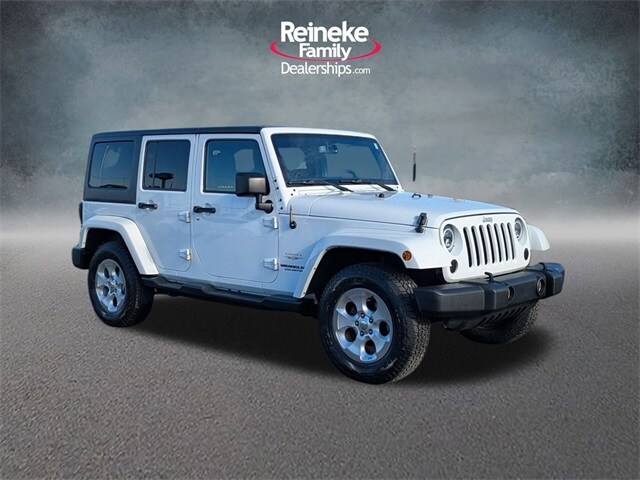 2015 Jeep Wrangler Unlimited Sahara. At Reineke Family Dealerships, we pride ourselves on delivering a convenient and transparent buying experience. Get your key from Reineke! Please be aware that all listed vehicles are subject to additional applicable sales tax, titling, license, and registration fees, including a registration convenience fee of $50 where applicable and a documentary fee of up to $387. We attempt to update this inventory on a regular basis. However, there can be a delay between the sale of a vehicle and the update of the inventory. Vehicle mileage listed may vary due to vehicle demonstrations. All pre-owned vehicles are represented and sold AS-IS with no dealer warranty, although manufacturer warranty may remain and vehicle may be eligible for an optional vehicle service contract. All vehicles are subject to prior sale, so please give us a call to confirm vehicle availability. Vehicles shown at different locations are not currently in our inventory but can be made available to you at our location within a reasonable date from the time of your request.