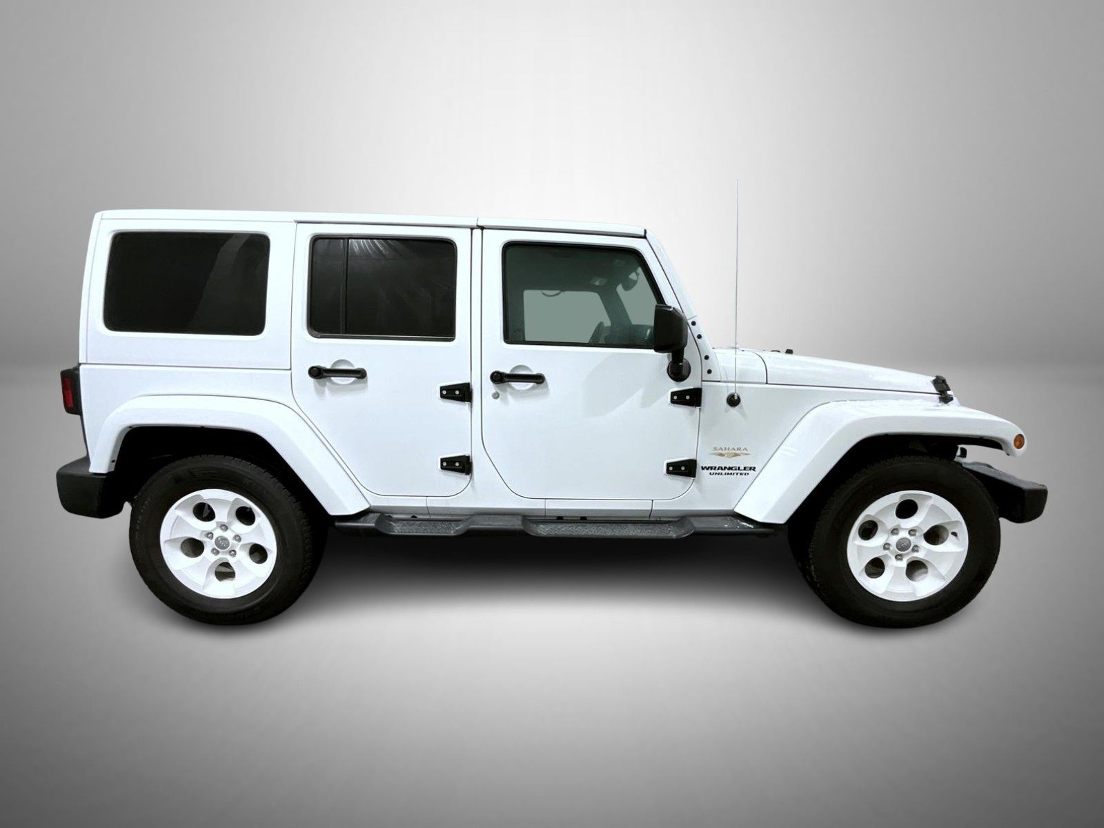 Bright White Clearcoat 2015 Jeep Wrangler Unlimited Sahara 4WD 5-Speed Automatic 3.6L 6 cylinder 18" x 7.5" Polished Satin Carbon Wheels, 3.21 Rear Axle Ratio, 4-Wheel Disc Brakes, 40GB Hard Drive w/28GB Available, 5-Year SIRIUSXM Travel Link Service, 6.5" Touch Screen Display, 8 Speakers, ABS brakes, Air Conditioning, Alloy wheels, Alpine 9-Speaker w/All Weather Subwoofer, AM/FM radio, Audio Jack Input for Mobile Devices, Auto-dimming Rear-View mirror, Brake assist, CD player, Cloth Bucket Seats, Compass, Connectivity Group, Driver door bin, Driver vanity mirror, Dual front impact airbags, Electronic Stability Control, Front anti-roll bar, Front Bucket Seats, Front Center Armrest w/Storage, Front fog lights, Front reading lights, Fully automatic headlights, GPS Navigation, Heated door mirrors, Heated Front Seats, Heavy Duty Suspension w/Gas Shocks, Illuminated entry, Integrated roll-over protection, Leather steering wheel, Leather Wrapped Steering Wheel, Low tire pressure warning, Manufacturer's Statement of Origin, Occupant sensing airbag, Outside temperature display, Panic alarm, Passenger door bin, Passenger vanity mirror, Power door mirrors, Power steering, Power windows, Quick Order Package 24G, Radio data system, Radio: Uconnect 130 AM/FM/CD/MP3, Radio: Uconnect 430N CD/DVD/MP3/HDD/NAV, Rear anti-roll bar, Remote keyless entry, Remote Start System, Remote USB Port, Security system, SIRIUSXM Travel Link, Speed control, Split folding rear seat, Steering wheel mounted audio controls, Tachometer, Tilt steering wheel, Tire Pressure Monitoring Display, Traction control.