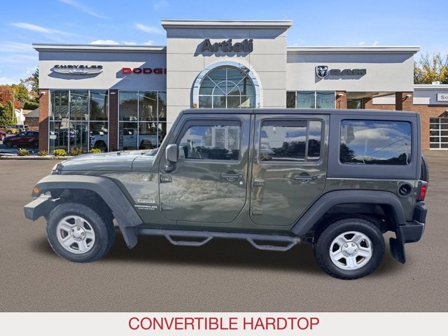 Carfax One-Owner. Artioli Chrysler Dodge Ram is proud to offer: Connectivity Group (Tire Pressure Monitoring Display, Uconnect Voice Command with Bluetooth, and Vehicle Information Center), Quick Order Package 23C, 16" x 7.0" Luxury Styled Steel Wheels, 3.21 Rear Axle Ratio, 4-Wheel Disc Brakes, 8 Speakers, ABS brakes, Air Conditioning, AM/FM radio, Black 3-Piece Hard Top, Brake assist, CD player, Cloth Bucket Seats, Compass, Delete Sunrider Soft Top, Driver door bin, Driver vanity mirror, Dual front impact airbags, Electronic Stability Control, Freedom Panel Storage Bag, Front anti-roll bar, Front Bucket Seats, Front Center Armrest with Storage, Front fog lights, Integrated roll-over protection, Low tire pressure warning, Normal Duty Suspension, Occupant sensing airbag, Outside temperature display, Passenger door bin, Passenger vanity mirror, Power steering, Radio: Uconnect 130 AM/FM/CD/MP3, Rear anti-roll bar, Rear Window Defroster, Rear Window Wiper/Washer, SIRIUS Satellite Radio, Speed control, Split folding rear seat, Steering wheel mounted audio controls, Sunrider Soft Top, Tachometer, Tilt steering wheel, Tinted Rear Quarter & Liftgate Windows, Traction control, Trip computer, and Variably intermittent wipers. When you’re looking for a new or pre-owned vehicle, you want to shop at the best car dealer. At Artioli Chrysler Dodge Ram, we take pride in being the best in the business while making customer satisfaction our number one goal. We offer a wide range of new, pre-owned, and commercial vehicles to suit your needs, and our knowledgeable staff is ready to help you make the perfect selection.