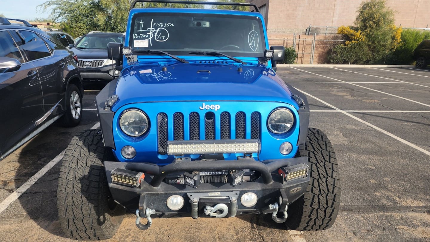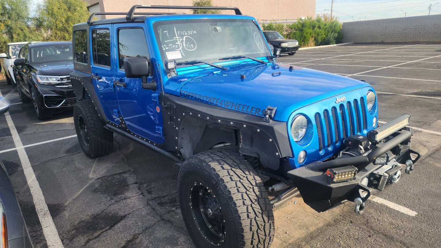 The 2015 Jeep Wrangler Unlimited 4WD 4dr Sport stands out with its striking Hydro Blue Pearl Coat exterior, offering both ruggedness and style to tackle any adventure. Complementing this bold exterior is a sleek Black interior, creating a refined yet durable cabin capable of withstanding the rigors of off-road journeys. Sporting a powerful 3.6L 6-cylinder engine, this Wrangler is built for performance, making every drive an exhilarating experience. Designed with off-road enthusiasts in mind, this Jeep boasts a 4WD 4dr Sport style paired with a Four Wheel Drive drivetrain, providing exceptional traction and handling on all terrains. The inclusion of the quick order package 24s enhances convenience, ensuring that you spend less time preparing and more time enjoying the drive. The 5-speed automatic transmission (W5A580) offers smooth shifting and added comfort for both city streets and backcountry trails. Adding to its versatility, the black 3-piece hard top allows for an open-air experience while providing the option for full protection against the elements. The connectivity group ensures that you stay connected and informed, even when venturing off the beaten path. A 3.73 rear axle ratio further exemplifies the Wrangler's capability, delivering excellent torque and control when needed most. This 2015 Jeep Wrangler Unlimited is not just a vehicle; it's an invitation to explore the world with confidence and style.