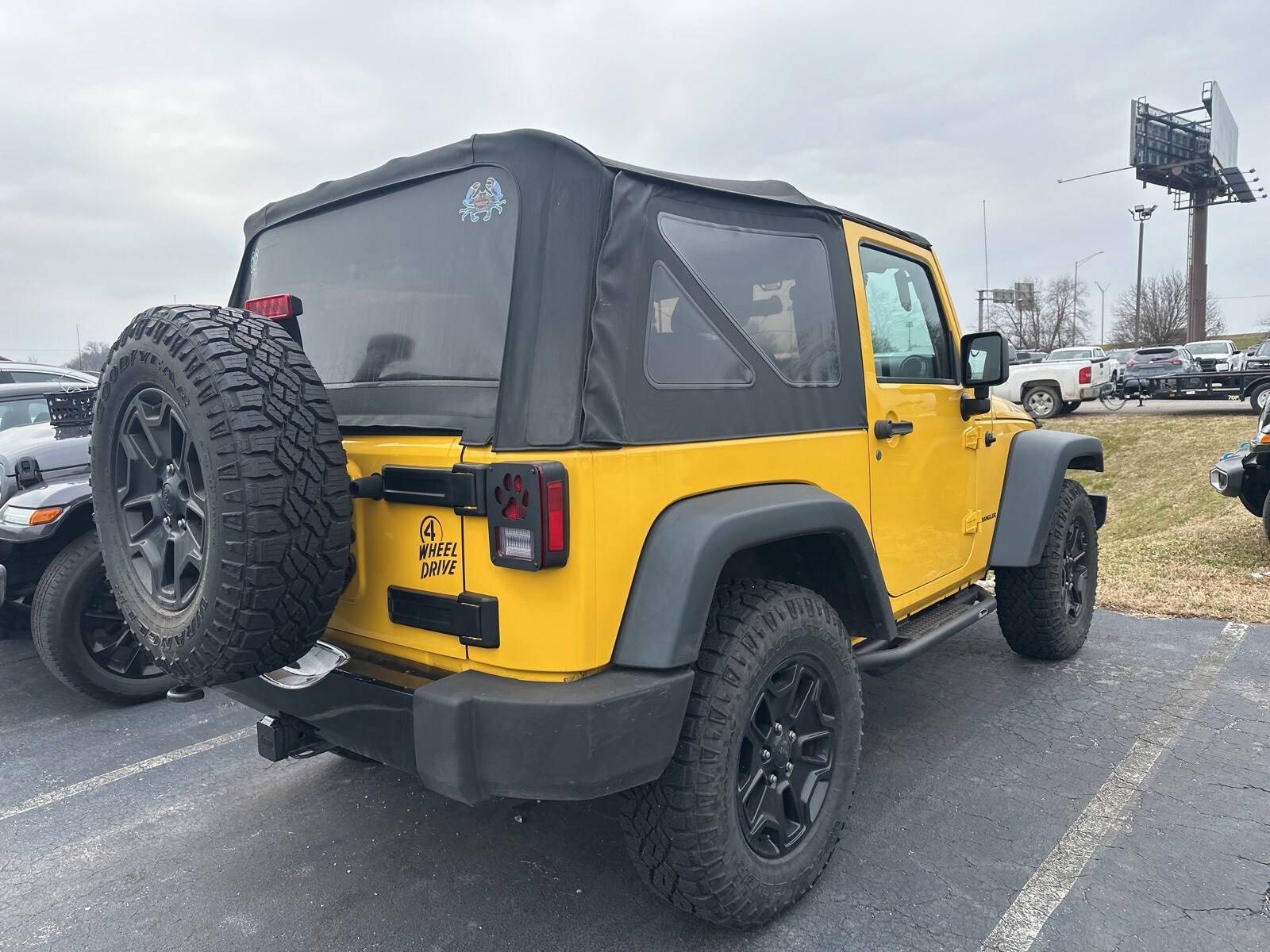2015 Jeep Wrangler Willys Wheeler. Baja Yellow Clearcoat. Awards: 2015 KBB.com 10 Most Awarded Cars, 2015 KBB.com 10 Coolest New Cars Under $25,000, 2015 KBB.com Best Resale Value Awards, 2015 KBB.com 10 Most Fun SUVs, 2015 KBB.com 10 Best SUVs Under $25,000. Proudly. (Must finance with Ford Motor Credit to receive online pricing - see dealer for details.)