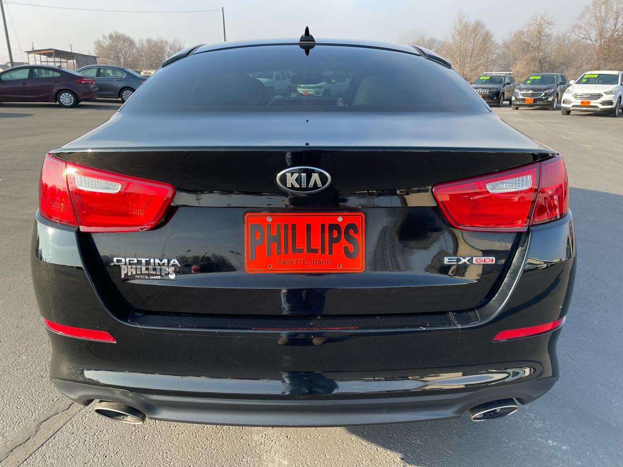 Get ready to hit the road in style with this sleek black 2015 Kia Optima! This reliable ride boasts a powerful 2.4L DOHC I4 GDI engine, paired with a smooth 6-speed automatic transmission with Sportmatic mode for an enjoyable driving experience. With front-wheel drive and a low 2.88 axle ratio, you'll feel confident and in control on every journey. Not only does this Optima look great on the outside with its chrome accents and fog lamps, but it also offers a comfortable and feature-packed interior. From the leather/piano black steering wheel to the dual-zone automatic air conditioning, this car has everything you need to stay cozy and relaxed while on the road. Safety is a top priority with this Optima, featuring side impact beams, dual-stage airbags, and rear child safety locks. Plus, you can rest assured with the availability of a Carfax report for added peace of mind. Don't miss out on your chance to own this incredible 2015 Kia Optima - it's the perfect combination of style, performance, and reliability! Visit Phillips Auto Sales online at phillipsautosales.com to see more pictures of this vehicle or call us at 208-642-2186 today to schedule your test drive.