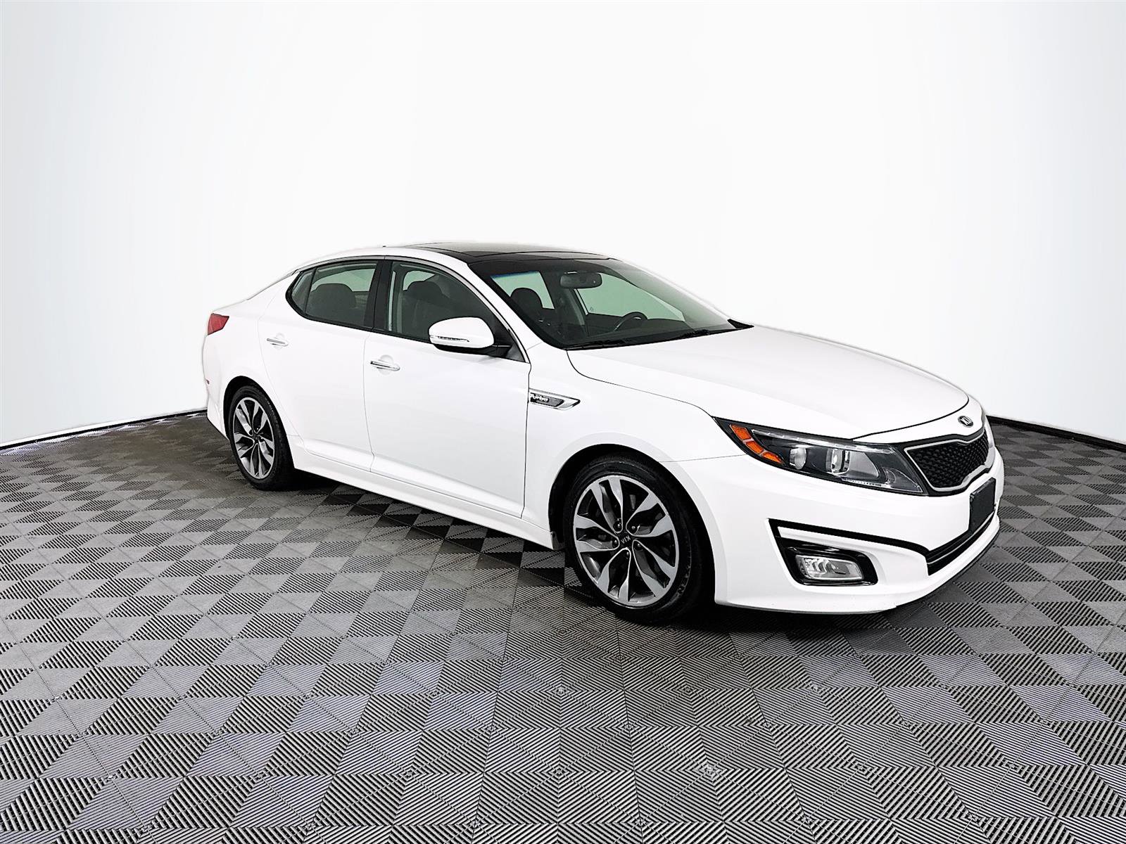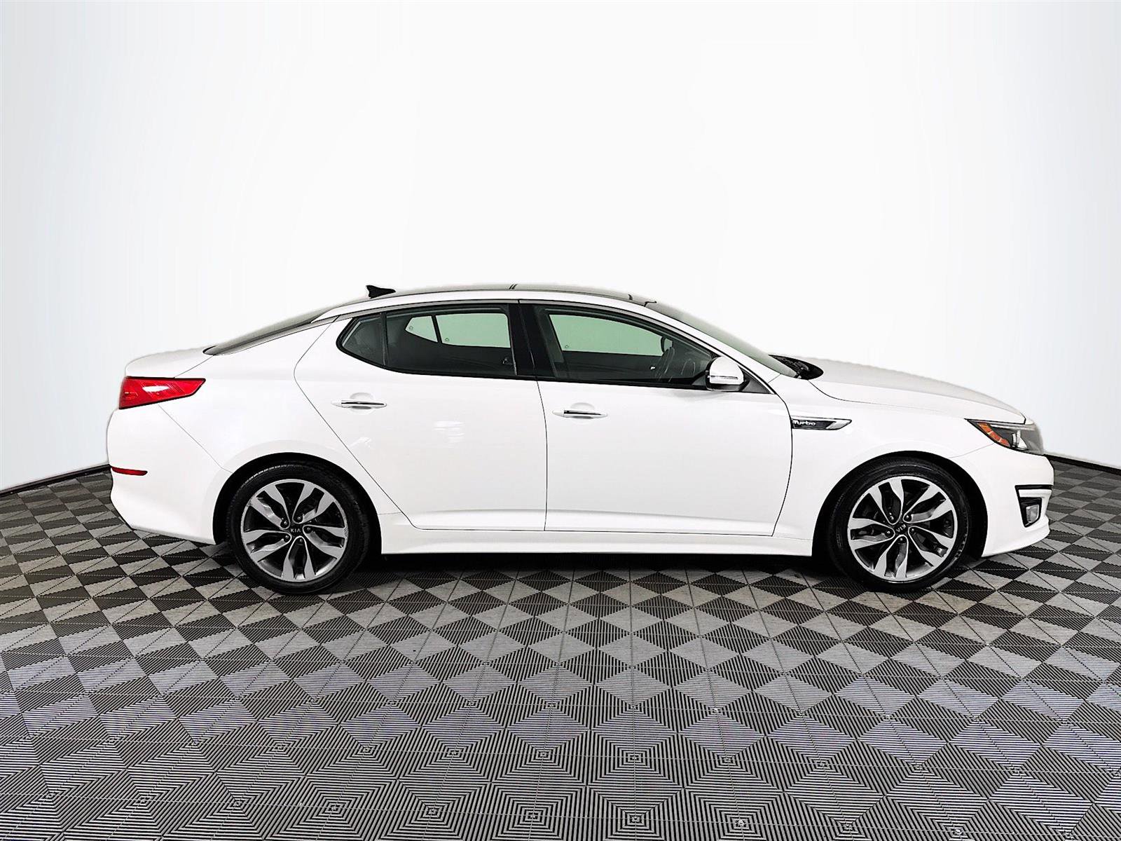 This 2015 Kia Optima SX in Snow White Pearl features a Value Plus Warranty Certified, Black Leather, 18 Machined Alloy Wheels, 4-Way Power Front Passenger Seat, 4-Wheel Disc Brakes, 6 Speakers, ABS brakes, Air Conditioning, Alloy wheels, AM/FM radio: SiriusXM, AM/FM/CD/MP3 Radio, Auto-dimming Rear-View mirror, Automatic temperature control, Blind Spot Detection with Cross-Traffic Alert, Brake assist, Bumpers: body-color, Cargo Mat, CD player, Compass, Delay-off headlights, Driver door bin, Driver Seat Memory, Driver vanity mirror, Dual front impact airbags, Dual front side impact airbags, Electronic Stability Control, Four wheel independent suspension, Front anti-roll bar, Front Bucket Seats, Front Center Armrest, Front dual zone A/C, Front fog lights, Front reading lights, Fully automatic headlights, Gloss Black B-Pillar, HD Radio, Heated & Ventilated Front Seats, Heated door mirrors, Heated Rear Outboard Seats, High intensity discharge headlights: Xenon, Illuminated entry, Infinity Premium Sound System, Leather Seat Trim, Leather Shift Knob, Low tire pressure warning, Navigation System, Occupant sensing airbag, Outside temperature display, Overhead airbag, Overhead console, Panic alarm, Panoramic Sunroof, Passenger door bin, Passenger vanity mirror. Certified. Clean CARFAX. Odometer is 27280 miles below market average! 20/31 City/Highway MPG.