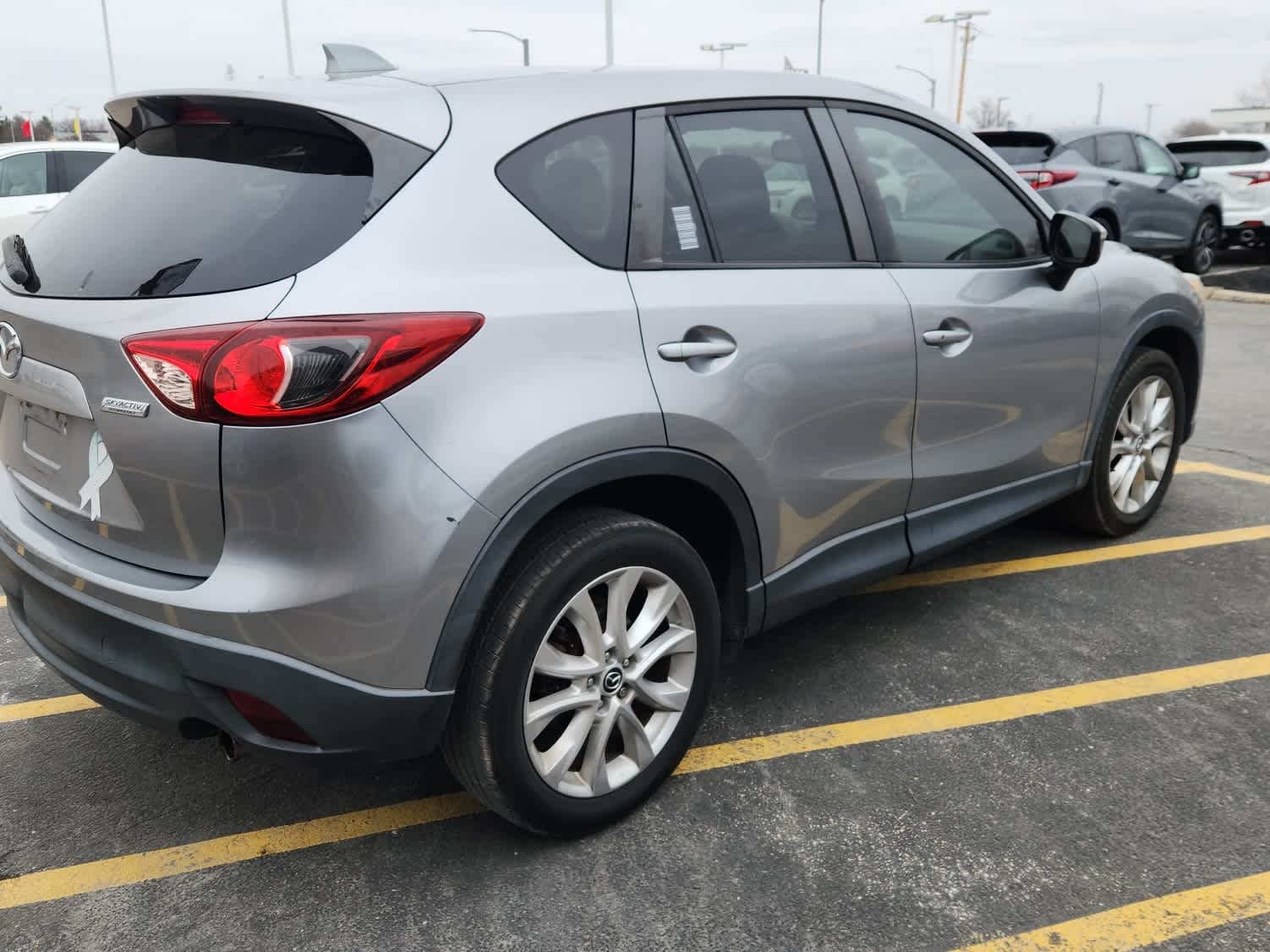 Clean CARFAX. Liquid Silver Metallic 2015 Mazda CX-5 Grand Touring FWD 6-Speed Automatic SKYACTIV 2.5L 4-Cylinder DOHC 16V. Recent Arrival! Odometer is 12294 miles below market average! 25/32 City/Highway MPG. CX-5 Grand Touring is nicely equipped with Grand Touring Technology Package, 19 x 7J Aluminum Alloy Wheels, and Smart City Brake Support System.