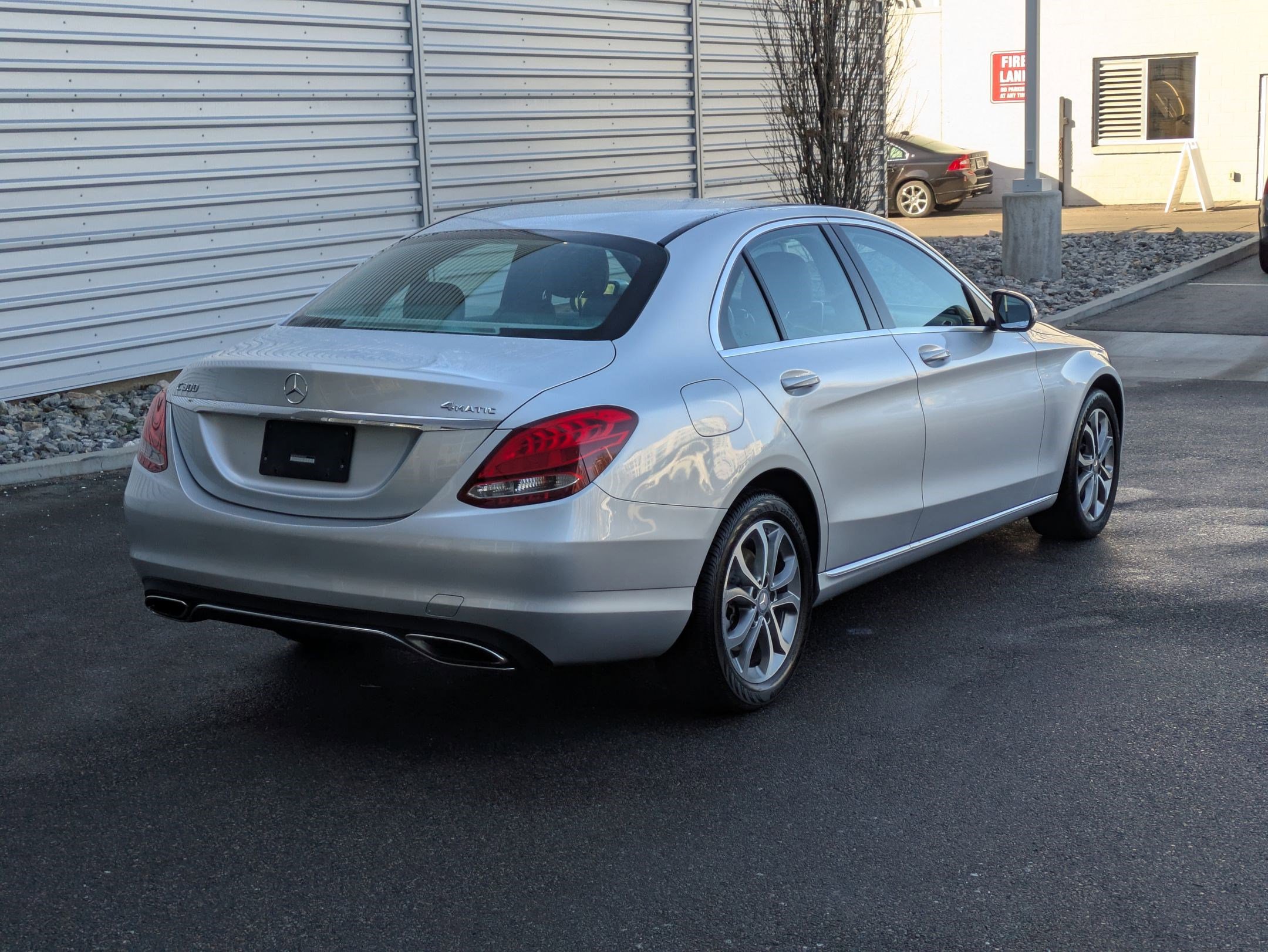 Silver 2015 Mercedes-Benz C-Class C 300 4MATIC® 4MATIC® 7G-TRONIC PLUS 7-Speed Automatic 2.0L I4 Turbocharged 4MATIC®, 4-Wheel Disc Brakes, 8 Speakers, ABS brakes, Air Conditioning, Alloy wheels, AM/FM radio, Anti-whiplash front head restraints, Auto tilt-away steering wheel, Auto-dimming door mirrors, Auto-dimming Rear-View mirror, Automatic temperature control, Brake assist, Bumpers: body-color, CD player, Child-Seat-Sensing Airbag, Compass, Delay-off headlights, Driver door bin, Driver vanity mirror, Dual front impact airbags, Dual front side impact airbags, Electronic Stability Control, Emergency communication system: mbrace2, Four wheel independent suspension, Front anti-roll bar, Front Bucket Seats, Front Center Armrest, Front dual zone A/C, Front reading lights, Fully automatic headlights, Garage door transmitter: Homelink, Head restraints memory, Heated door mirrors, Illuminated entry, Knee airbag, Low tire pressure warning, MB-Tex Upholstery, Memory seat, Occupant sensing airbag, Outside temperature display, Overhead airbag, Overhead console, Panic alarm, Passenger door bin, Passenger vanity mirror, Power door mirrors, Power driver seat, Power passenger seat, Power steering, Power windows, Premium audio system: COMAND®, Radio data system, Radio: HD AM/FM Single Disc CD/MP3, Rain sensing wipers, Rear anti-roll bar, Rear fog lights, Rear reading lights, Rear seat center armrest, Rear window defroster, Remote keyless entry, Security system, Speed control, Speed-sensing steering, Split folding rear seat, Steering wheel memory, Steering wheel mounted audio controls, Tachometer, Telescoping steering wheel, Tilt steering wheel, Traction control, Trip computer, Turn signal indicator mirrors, Variably intermittent wipers, Weather band radio. Recent Arrival! Odometer is 34658 miles below market average! 24/31 City/Highway MPG.