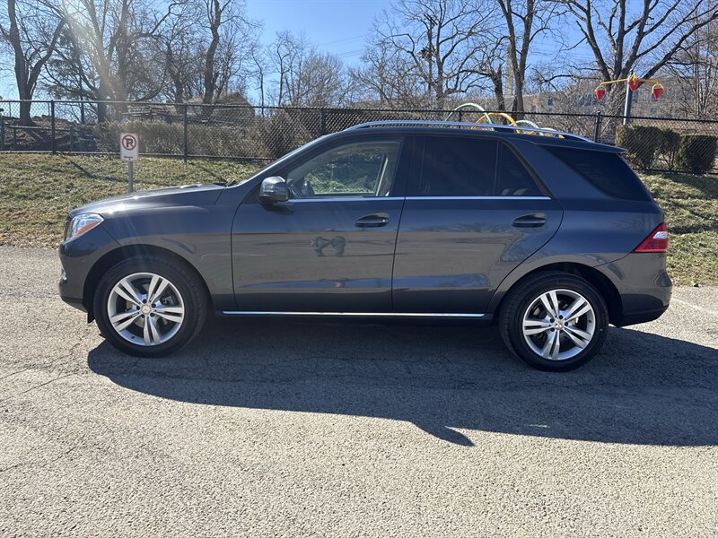 2015 Mercedes-Benz ML 350 4MATIC in Steel Grey Metallic with Almond Beige/Mocha interior, powered by a 3.5L V6 producing 302 hp and 273 ft-lb, automatic and full-time 4MATIC all-wheel drive. Well maintained with under 87,000 miles (averaging less than 8,000 miles per year) and EPA ratings of about 17 MPG city / 22 MPG highway. Factory equipment includes full-time AWD and the 7-speed automatic transmission, power-adjustable front seats with driver memory, dual-zone automatic climate control, power windows and locks, remote keyless entry, and a power liftgate. Infotainment features include Bluetooth hands-free and audio streaming, steering wheel audio and phone controls, AM/FM audio with auxiliary/USB connectivity. Safety and convenience systems installed from the factory include anti-lock brakes (ABS), stability and traction control, multiple airbags (front, side and curtain), tire pressure monitoring, cruise control, and exterior heated mirrors.