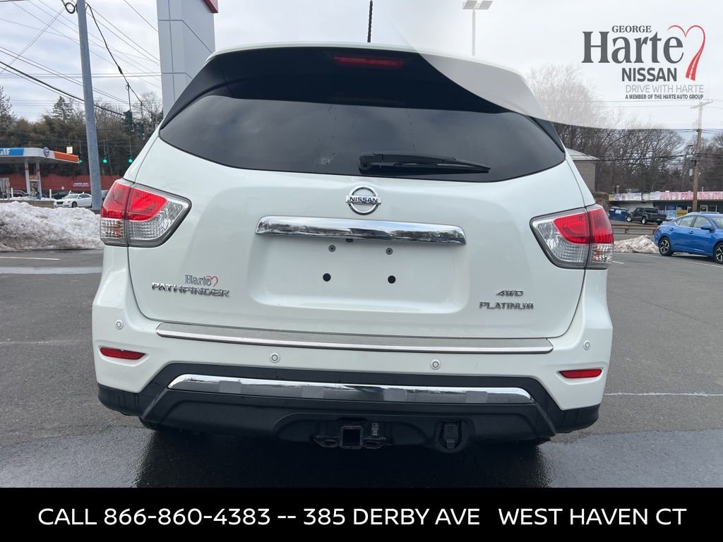 Recent Arrival! Local Trade, 3rd Row Seating, Navigation, Back-Up Camera, Heated-Leather Seats. Pearl White 2015 Nissan Pathfinder Platinum 3.5L V6 CVT with Xtronic 4WD 19/26 City/Highway MPG. Awards: 2015 KBB.com 15 Best Family Cars, 2015 KBB.com Best Buy Awards Finalist. Buy with Confidence. Call Today @ 203-392-2131 to Schedule a Test Drive. This Vehicle is Ready for Immediate Delivery!!