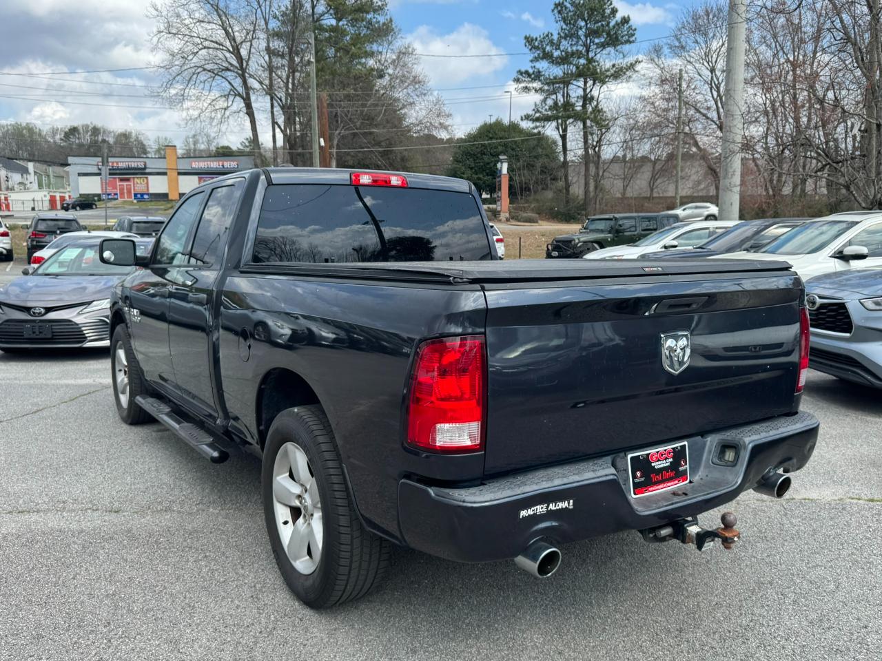 2015 Dodge RAM 1500 Express Quad Cab RWD V8 5.7L, Black Clear Coat on Gray, Automatic transmission, back-up camera, Bluetooth technology, alloy wheel, AM / FM stereo, CD audio, dual zone climate control, power seats, power door locks, power windows, power steering, power exterior mirrors, premium wheel, remote keyless entry, traction control, tire pressure monitor, cruise, tilt, ABS, cold AC, heat, loaded. Please contact Georgia Car Company for more information at 770-921-2760.