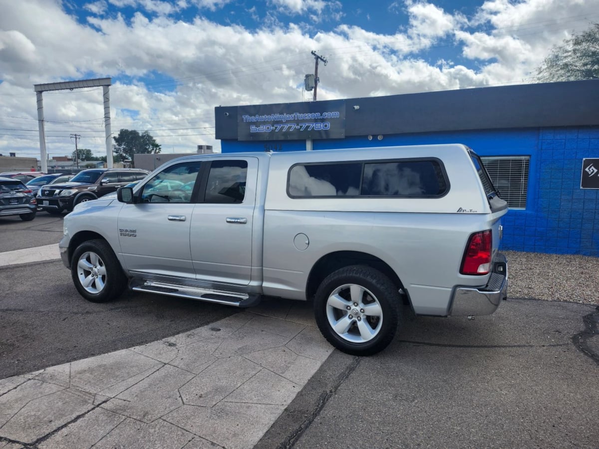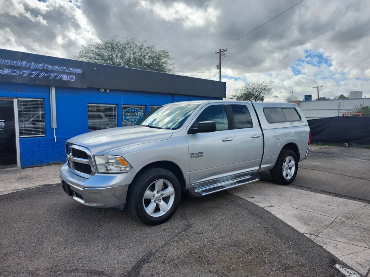 The 2015 Ram 1500 4WD Quad Cab 140.5" SLT is a powerful and versatile pickup, designed to meet the demands of both work and leisure. Its Bright Silver Metallic Clearcoat exterior exudes a sleek and modern appeal, complemented by the muscular lines and robust stance typical of the Ram brand. Equipped with a 3.6L V6 engine, this truck delivers a reliable blend of horsepower and fuel efficiency, making it ideal for those who require power without sacrificing economy. Inside, the Diesel Gray/Black interior offers a complimentary contrast to the bright exterior, providing a spacious and comfortable cabin space for driver and passengers alike. The craftsmanship of the interior is evident in the quality of materials used and the thoughtful arrangement of controls and features, ensuring an intuitive driving experience. Both functional and stylish, the SLT trim level includes an array of features aimed at enhancing convenience, comfort, and connectivity on the road. With its 140.5-inch wheelbase, the Ram 1500 Quad Cab provides a smooth ride along with impressive towing and payload capacities, catering to both personal and professional needs. Its Four Wheel Drive drivetrain adds an extra layer of capability, allowing this truck to handle a variety of terrains and weather conditions with ease. The vehicle's design prioritizes both aesthetics and practicality, offering ample storage options within the cabin and a durable bed for transporting gear. Advanced safety features have been integrated to provide peace of mind, including reliable braking systems and comprehensive airbag coverage. The 2015 Ram 1500 stands out with its efficient performance figures, while the SLT trim's additional accessories provide added value to the driver. Whether you're navigating city streets or backcountry roads, this truck provides a robust and dependable ride. The combination of its rugged build, advanced technology, and user-friendly features makes the Ram 1500 a favored choice among truck enthusiasts. Ready to respond to the demands of varied lifestyles, this vehicle embodies the balance between rugged capability and everyday practicality. Overall, the 2015 Ram 1500 4WD Quad Cab 140.5" SLT is not just a pickup truck; it's a statement of strength, capability, and sophistication. Its thoughtful design and engineering demonstrate why it remains a respected name in the pickup market.