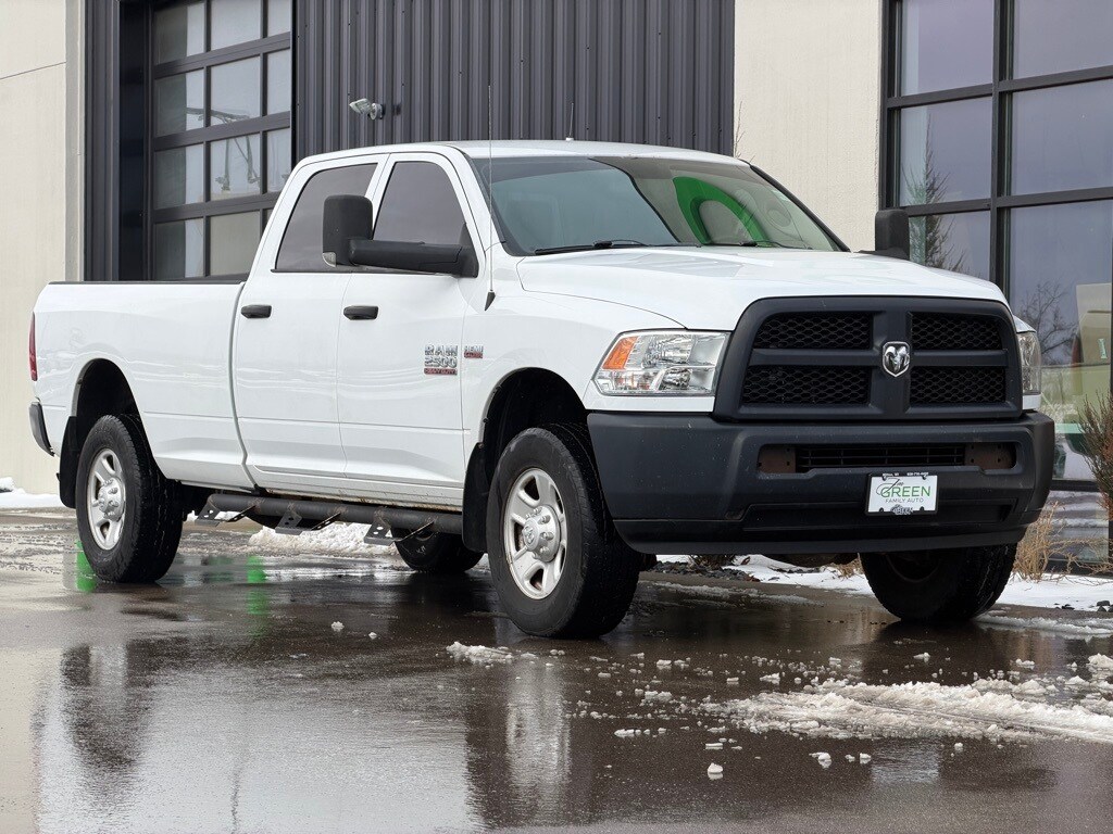 Bright White Clearcoat 2015 Ram 2500 Tradesman 4WD 6-Speed Automatic 6.4L V8 2500 Tradesman, 4D Crew Cab, 6.4L V8, 6-Speed Automatic, 4WD, Bright White Clearcoat, Diesel Gray/Black Vinyl, 17" x 7.5" Steel Styled Wheels, 180 Amp Alternator, 3.73 Rear Axle Ratio, 4-Wheel Disc Brakes, 6 Speakers, ABS brakes, Air Conditioning, Black Exterior Mirrors, Brake assist, Center Hub, Delay-off headlights, Driver door bin, Dual front impact airbags, Dual front side impact airbags, Electronic Stability Control, Front Armrest w/Cupholders, Fully automatic headlights, Power steering, Power windows, Quick Order Package 22A Tradesman, Radio data system, Rear Folding Seat, Speed control, Tip Start, Traction control, Variably intermittent wipers. Recent Arrival! Odometer is 10286 miles below market average!