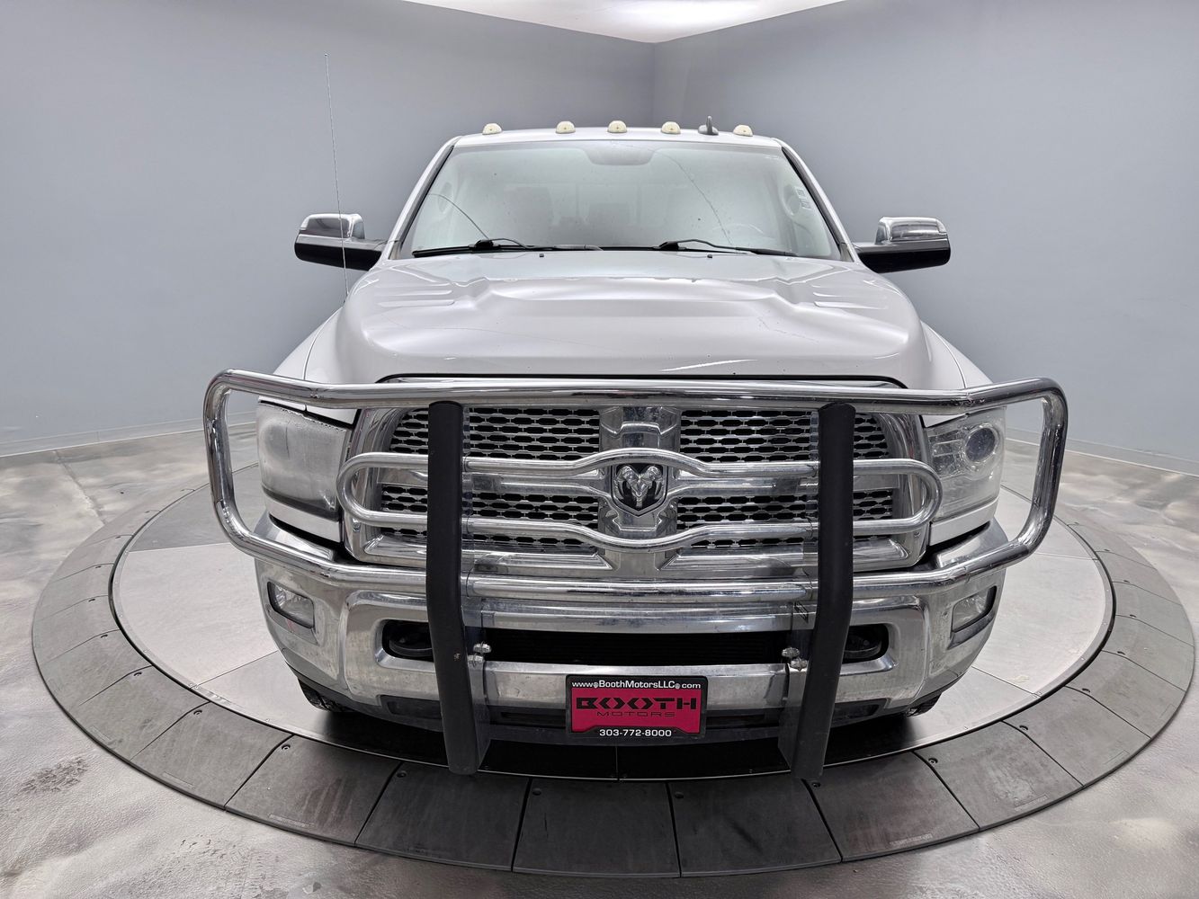 Go to boothmotorsllc.com for more information! This 2015 Ram 3500 Laramie Mega Cab features a Bright White Clearcoat exterior and a luxurious interior with leather seats, heated and ventilated seats, heated steering wheel, touchscreen, Bluetooth, navigation, cruise control, steering wheel controls, USB port, tow package, backup camera, park sensors, and remote start.