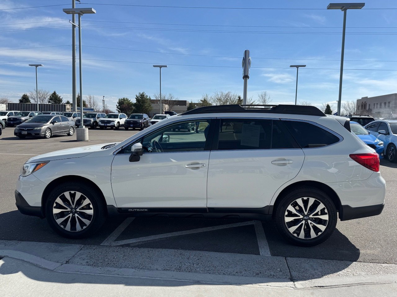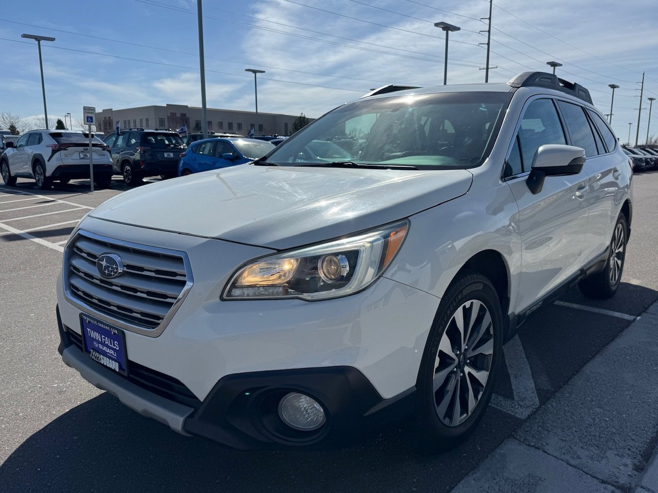 Versatile, comfortable, and built for year-round adventure, this 2015 Subaru Outback 2.5i Limited AWD is the perfect blend of capability, efficiency, and premium features. Powered by a 2.5L 4-cylinder engine paired with Subarus Lineartronic CVT, this Outback delivers smooth performance along with excellent fuel economy rated at 25 city / 33 highway MPG. With Subarus legendary Symmetrical All-Wheel Drive, youll have confidence whether you're commuting, traveling, or heading out for weekend adventures. The Limited trim brings upscale comfort with perforated leather-trimmed seating, heated front and rear seats, memory drivers seat, and dual-zone automatic climate control. The spacious interior offers plenty of room for passengers and cargo, while the power liftgate and split-folding rear seats make loading gear quick and easy. Technology and entertainment are top-notch with a Navigation System, Subaru infotainment with Aha integration, and a premium harman/kardon surround sound system with 12 speakers. Additional convenience features include keyless access with push-button start, HomeLink garage door transmitter, power moonroof, and steering-wheel paddle-shift controls for a more engaging drive. Safety and driver confidence are enhanced with Blind Spot Detection, a rear-vision camera, electronic stability control, traction control, and multiple airbags. The exterior is finished in Crystal White Pearl and rides on 18-inch aluminum alloy wheels, giving this Outback a clean, refined look that matches its rugged capability. With its premium Limited interior, excellent fuel economy, and proven Subaru AWD capability, this 2015 Outback is ready for everything from daily commutes to mountain getaways.