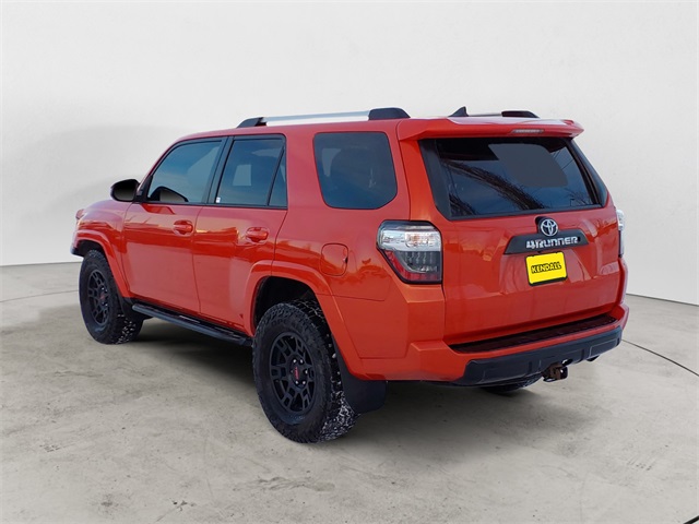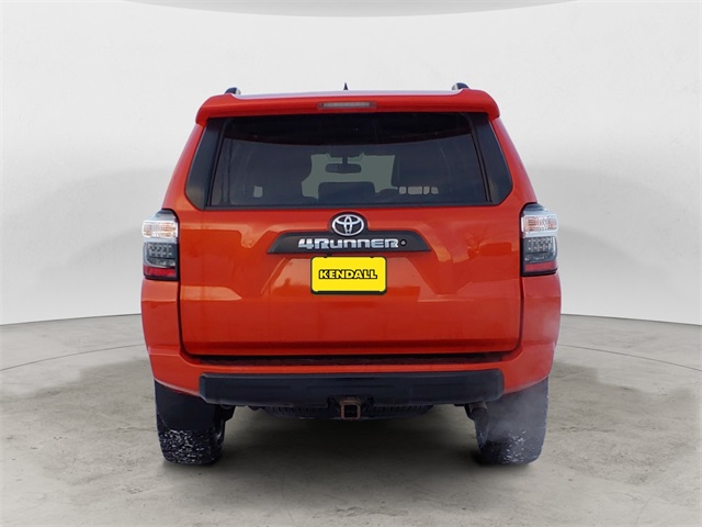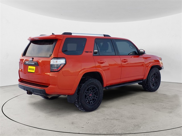 Inferno Red 2015 Toyota 4Runner TRD Pro 4WD 5-Speed Automatic with Overdrive 4.0L V6 SMPI DOHC 4WD, Black Artificial Leather, 3.727 Axle Ratio, 4-Wheel Disc Brakes, 8 Speakers, ABS brakes, Air Conditioning, All Weather Floor Mats & Cargo Tray, Alloy wheels, AM/FM radio: SiriusXM, Anti-whiplash front head restraints, Auto-Dimming Rear-View Mirror, Auto-dimming Rear-View mirror, Black Roof Rails, Brake assist, Bumpers: body-color, Cargo Divider, CD player, Compass, Door Edge Guards, Driver door bin, Driver vanity mirror, Dual front impact airbags, Dual front side impact airbags, Electronic Stability Control, Exterior Parking Camera Rear, Front anti-roll bar, Front Bucket Seats, Front Center Armrest, Front fog lights, Front reading lights, Front wheel independent suspension, Garage Door Opener, Garage door transmitter: HomeLink, Heated door mirrors, Heated Front Bucket Seats, Heated front seats, Illuminated entry, Knee airbag, Leather Shift Knob, Low tire pressure warning, Occupant sensing airbag, Outside temperature display, Overhead airbag, Overhead console, Panic alarm, Passenger door bin, Passenger vanity mirror, Power door mirrors, Power driver seat, Power passenger seat, Power steering, Power windows, Radio: Entune Premium Audio with Navigation, Rear anti-roll bar, Rear seat center armrest, Rear window defroster, Rear window wiper, Remote Engine Starter, Remote keyless entry, Steering wheel mounted audio controls, Tachometer, Telescoping steering wheel, Tilt steering wheel, Traction control, TRD Badging, TRD Pro Floor Mats, TRD Pro Package, TRD Shift Knob, TRD Suspension Kit, Trip computer, Trunk Carpet, Turn signal indicator mirrors, Variably intermittent wipers, Voltmeter, Wheels: TRD 17" Matte Black Alloy, 4WD, Black Artificial Leather.