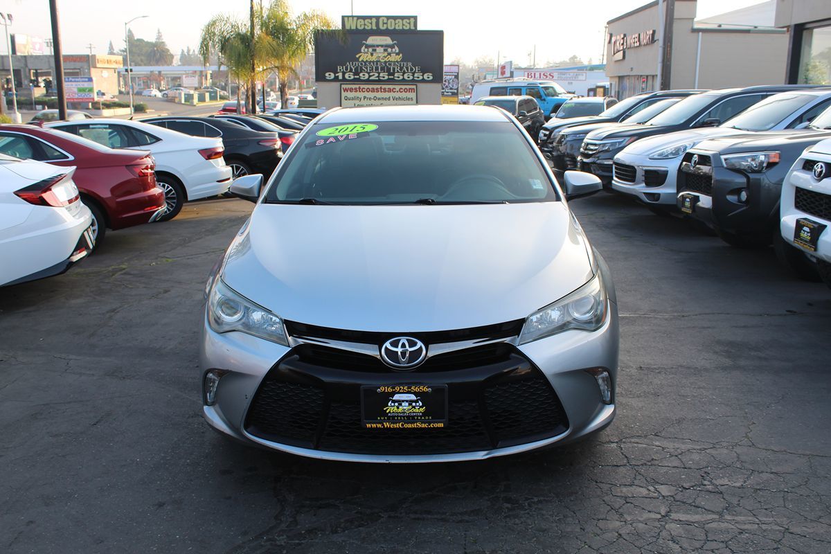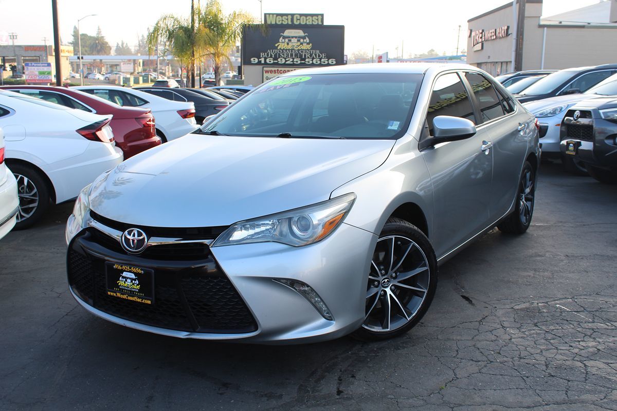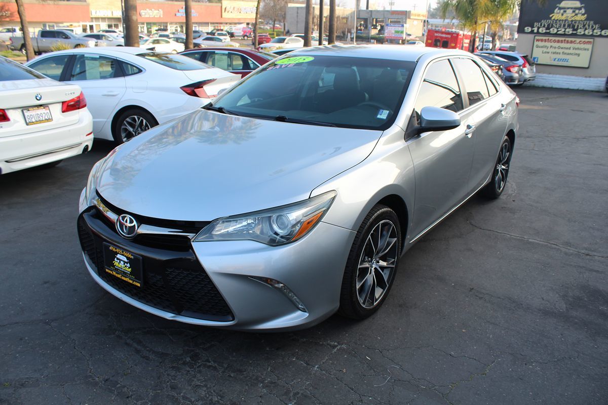 Meet our attractive One Owner, Accident Free 2015 Toyota Camry XSE Sedan in Celestial Silver Metallic. Powered by a 2.5 Liter 4 Cylinder that offers 178hp connected to a paddle-shifted 6 Speed Automatic transmission for easy passing maneuvers. This efficient Front Wheel Drive sedan rewards you with nearly 35mpg on the road and the confidence of sport-tuned suspension. 18-inch alloy wheels accent the bold exterior of the XSE with a black-painted finish and a distinct front grille. Inside our XSE, the ergonomically designed interior features Ultrasuede heated seats, an Entune Audio Plus touchscreen with Bluetooth phone and audio connectivity, and a sound system with steering wheel-mounted controls. Confident handling, straightforward technology, and comfortable passenger space make this car an absolute delight. Toyota offers ABS with brake assist, stability control, and an army of airbags to safeguard you in this impeccable Camry XSE sedan with a sterling reputation. Enjoy this smooth, quiet ride! Save this Page and Call for Availability. We Know You Will Enjoy Your West Coast Auto Sales Center Test Drive Towards Ownership!