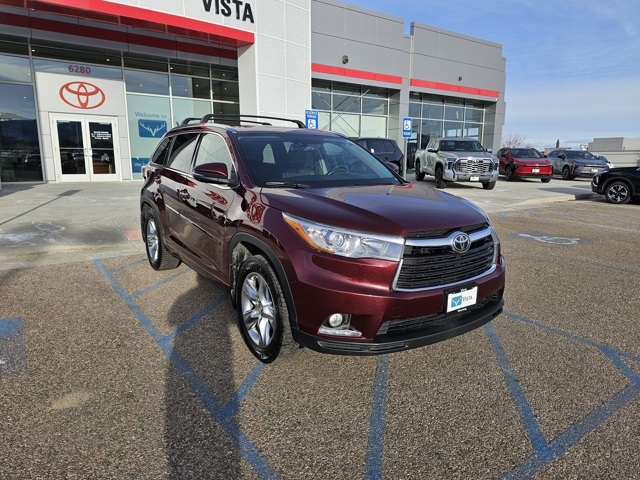 At Vista Toyota, our philosophy of doing business that finds a way to satisfy each and every customer. If it means pricing our vehicles based on market analysis and third party tools...done. Even if it means bringing back a car you don't absolutely love... we'll take it, no questions asked. We believe the whole experience should be completely transparent, positive and yes, even fun. 2015 Toyota Highlander Limited Platinum V6 Ooh La La Rouge Mica ALL WHEEL DRIVE, AWD, ABS brakes, Active Cruise Control, Alloy wheels, Electronic Stability Control, Front dual zone A/C, Heated door mirrors, Heated front seats, Heated rear seats, Heated/Ventilated Front Bucket Seats, Illuminated entry, Low tire pressure warning, Navigation System, Power Liftgate, Power moonroof, Remote keyless entry, Traction control.
