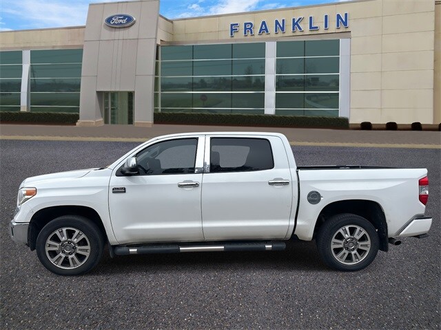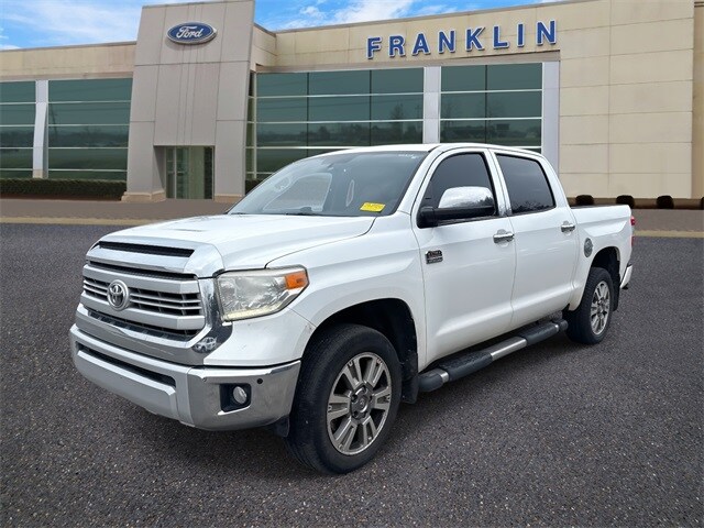 Clean CARFAX. 2015 Toyota Tundra 1794 Super White 4WD 6-Speed Automatic Electronic with Overdrive 5.7L 8-Cylinder SMPI Flex Fuel DOHC 4WD, Black/Brown, ABS brakes, Alloy wheels, Compass, Electronic Stability Control, Front dual zone A/C, Heated & Ventilated Front Bucket Seats, Heated door mirrors, Heated front seats, Illuminated entry, Leather Seat Trim, Low tire pressure warning, Navigation System, Power moonroof, Remote keyless entry, Traction control. Recent Arrival! Odometer is 47350 miles below market average! Thank You for letting us here at Ford Lincoln Of Franklin assist you with your next vehicle. If you have any questions please contact our Internet Manager, It is our pleasure in assisting you!