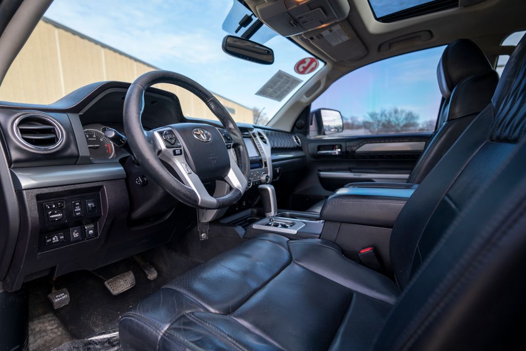 Experience legendary power, luxury, and capability with this 2015 Toyota Tundra 4WD Platinum CrewMax, equipped with a robust 5.7L V8 engine, a striking Magnetic Gray Metallic exterior, and a premium Black leather interior, available now at Umansky Toyota Milwaukee. Built for serious performance, this full-size truck delivers exceptional towing and hauling capability while providing a smooth, confident ride with four-wheel drive capability. The Platinum trim elevates the experience with upscale features including leather-appointed seating, heated and ventilated front seats, premium JBL audio, navigation, and advanced safety technologies. With its spacious CrewMax cabin, bold styling, and Toyota’s legendary reliability, the 2015 Toyota Tundra Platinum CrewMax is the perfect truck for work, play, and everything in between. Visit Umansky Toyota Milwaukee today to test drive this powerful and refined pickup.