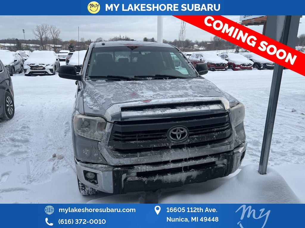 i-Force 5.7L V8 DOHC 32V LEV, 4WD, Silver Sky Metallic, *Local trade*, *Tow package*, *Trailer Tow Package*, ABS brakes, Clear Front Fog & Driving Lights, Electronic Stability Control, Heated door mirrors, Illuminated entry, Illuminated Entry System, Low tire pressure warning, Rear Under Seat Storage Tray, Remote keyless entry, Running Boards, Sliding Rear Window w/Privacy Glass, SR5 Package, Traction control. Silver Sky Metallic 2015 Toyota Tundra SR5 4WD 6-Speed Automatic Electronic with Overdrive i-Force 5.7L V8 DOHC 32V LEV. My Lakeshore Subaru is your #1 choice in Michigan to get the best price on used vehicles and best value for your trade. The My Lakeshore Subaru team is ready to provide you with a world-class experience, ensuring that you find the perfect vehicle that fits all your needs. Every vehicle has been through a full safety inspection completed by certified technicians and fully detailed. We sell many makes and models, Certified Pre-owned Subaru’s and Pre-owned Vehicles with years from 2025-2024-2023-2022-2021-2020-2019-2018-2017-2016-2015-2014-2013-2012-2011-2010-2009-2008-2007 and all makes Audi, BMW, Chevrolet, Toyota, Volkswagen, Kia, Hyundai, Mazda, Propane, Hydrogen, Natural Gas, Propane