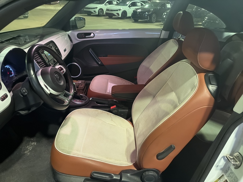 405-529-5600, Bob Moore VW, Beetle 1.8T Classic, 2D Hatchback, 1.8L 4-Cylinder, 6-Speed Automatic, FWD, Pure White, Beige/Brown Artificial Leather, 17" Heritage Alloy Wheels, 4-Wheel Disc Brakes, 8 Speakers, ABS brakes, Air Conditioning, Alloy wheels, AM/FM radio: SiriusXM, Bodyside moldings, Brake assist, Bumpers: body-color, CD player, Chrome wheels, Cloth & V-Tex Leatherette Seating Surfaces, Driver door bin, Driver vanity mirror, Dual front impact airbags, Dual front side impact airbags, Electronic Stability Control, Emergency communication system: VW Car-Net, Four wheel independent suspension, Front anti-roll bar, Front Bucket Seats, Front Center Armrest w/Storage, Front Comfort Seats, Front reading lights, Heated door mirrors, Heated front seats, Illuminated entry, Leather Shift Knob, Leather steering wheel, Low tire pressure warning, Navigation System, Occupant sensing airbag, Outside temperature display, Overhead console, Panic alarm, Passenger door bin, Passenger vanity mirror, Power door mirrors, Power steering, Power windows, Radio data system, Radio: RNS 315 Touchscreen Nav & Audio System, Rear anti-roll bar, Rear reading lights, Rear window defroster, Remote keyless entry, Speed control, Speed-sensing steering, Split folding rear seat, Spoiler, Steering wheel mounted audio controls, Tachometer, Telescoping steering wheel, Tilt steering wheel, Traction control, Trip computer, Turn signal indicator mirrors, Variably intermittent wipers. 25/33 City/Highway MPG