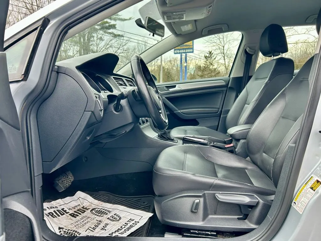 This used 2015 Volkswagen Golf SportWagen TDI S Wagon offers a perfect blend of practicality, efficiency, and modern features. With a sleek silver exterior and a comfortable black interior, this versatile wagon has logged 124,502 miles, showcasing its reliability and durability. Powered by a 2.0-liter turbocharged diesel engine, it delivers a robust 150 horsepower and 236 lb-ft of torque, all while achieving impressive fuel economy ratings of 31 mpg in the city and 42 mpg on the highway. Equipped with a 6-speed DSG automatic transmission and front-wheel drive, this vehicle provides a smooth, responsive driving experience. Its spacious five-passenger cabin makes it ideal for families or active individuals, while the four-door design ensures easy access. Additional features such as a backup camera, Bluetooth connectivity, keyless entry, push start, and satellite radio readiness enhance convenience and entertainment, making every trip enjoyable. This used Volkswagen Golf SportWagen also prioritizes safety and security with essential features like active head restraints for the front seats, four-wheel ABS for optimal stopping power, and cornering brake control to improve handling in curves. The auto-locking power door locks add peace of mind, ensuring the vehicle remains secure when parked or in motion. These safety systems work together to provide a confident driving experience, whether navigating city streets or highway routes. Despite its used status, this vehicle maintains a strong focus on passenger protection, making it a dependable choice for daily driving and longer journeys alike.