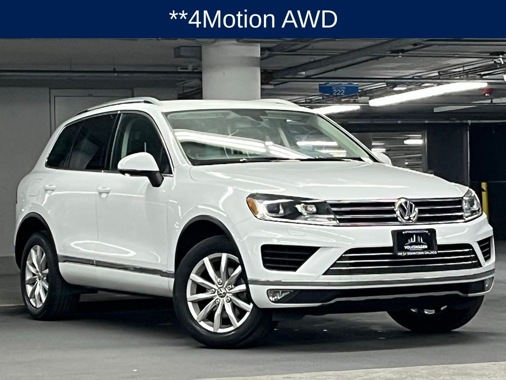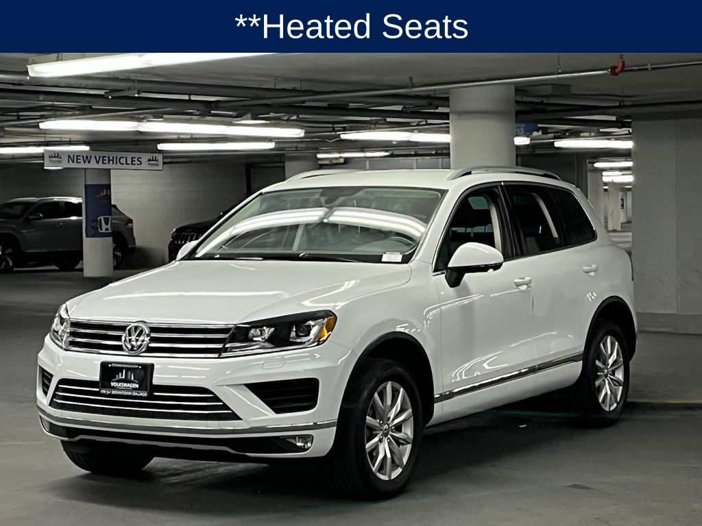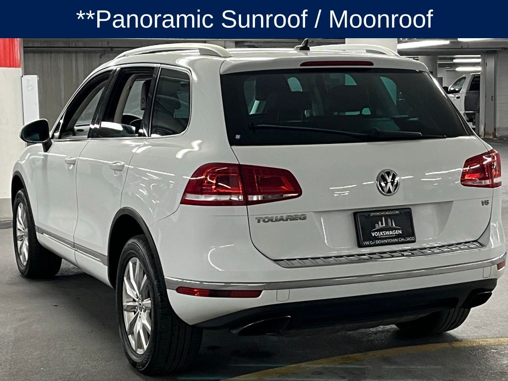 This Pre-Owned 2015 Volkswagen Touareg V6 Sport features a 3.6L VR6 engine and comes with a CARFAX History Report. The vehicle is equipped with a navigation system, heated front seats, a panoramic sunroof (or "Moonroof" as some may call it), and AWD for added performance and control. The interior is black Anthracite, and the exterior is a striking white. This Touareg is ready for your next adventure, whether on the road or in the wilderness.