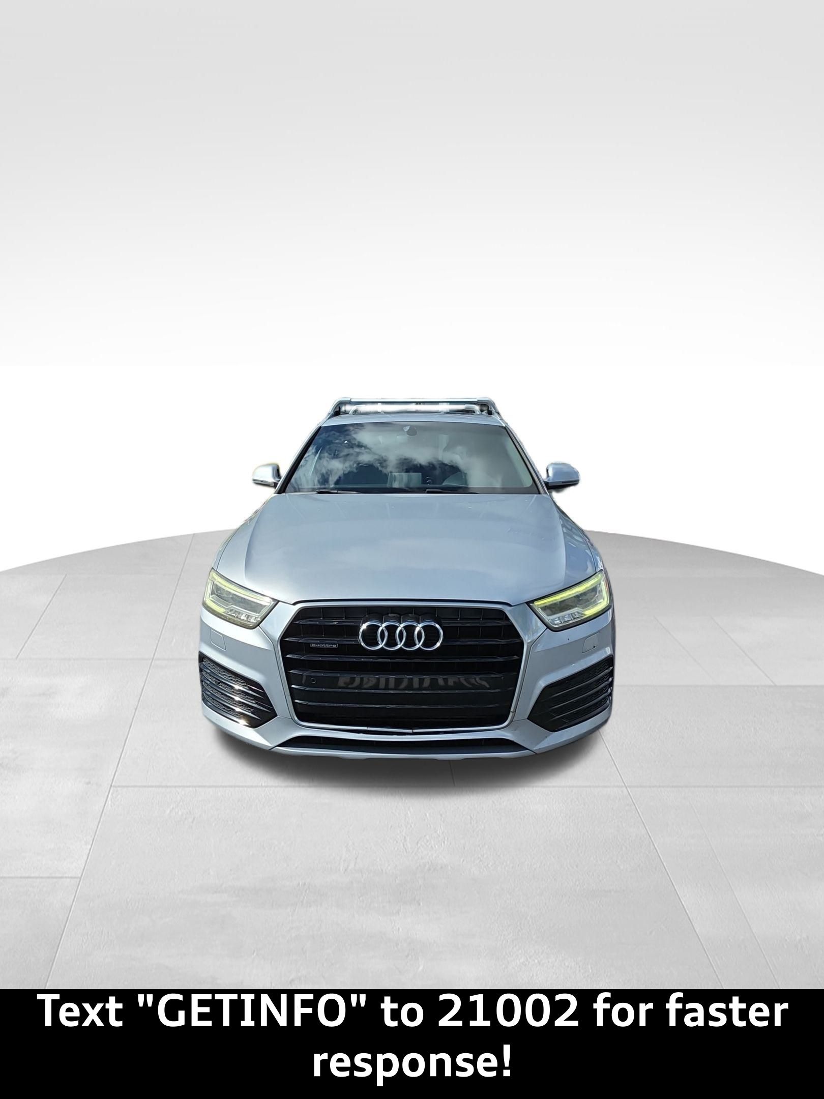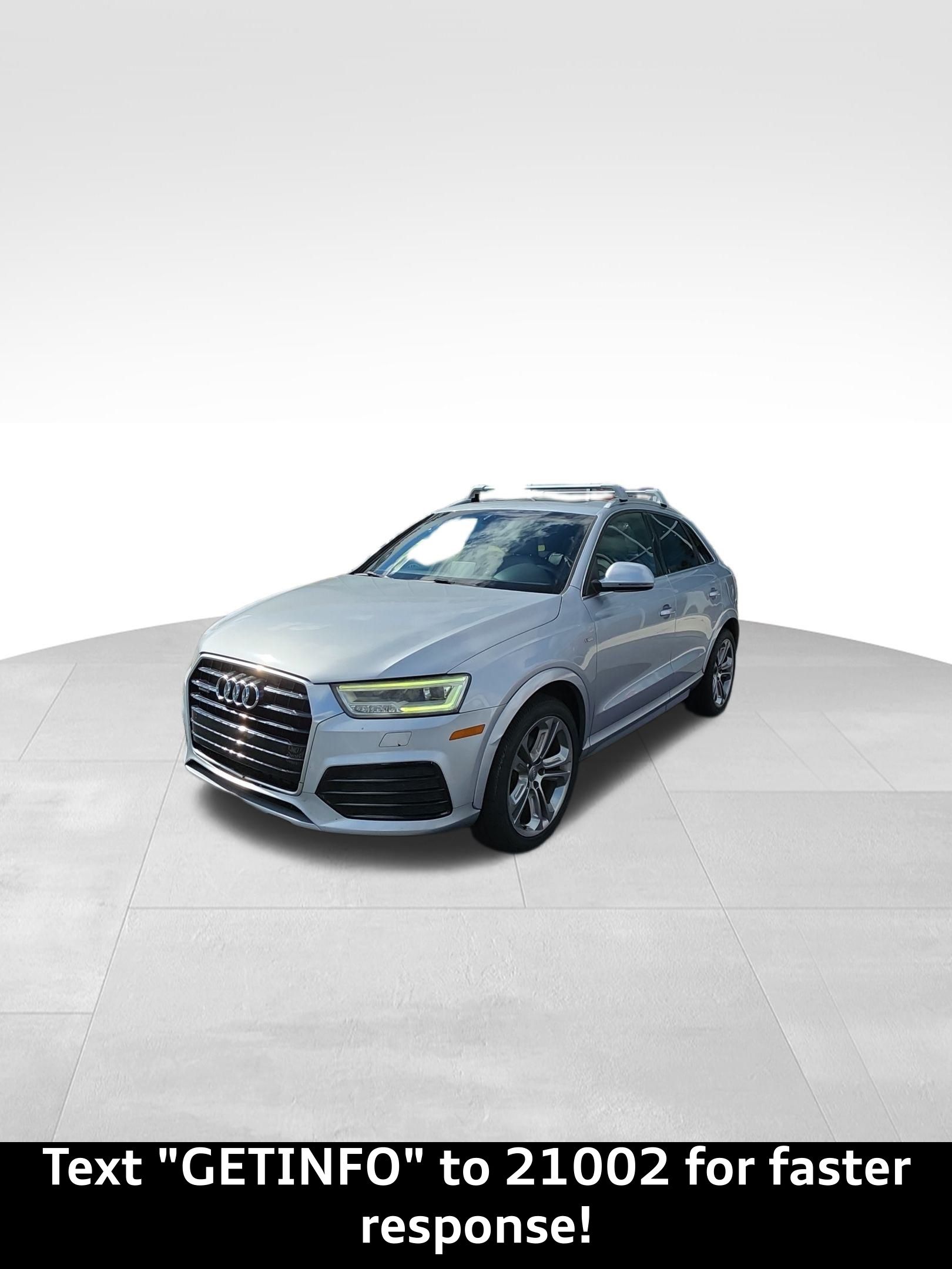 Used 2016 Audi Q3 For sale In Jacksonville Florida. CARFAX One-Owner. Clean CARFAX. Florett Silver Metallic quattro quattro 6-Speed Automatic with Tiptronic 2.0L 4-Cylinder TFSI Passed Rigorous Safety Inspection Performed by Certified Technician, Meticulously Detailed Inside and Out, CLEAN CARFAX, Q3 2.0T Prestige quattro, quattro, Audi Connect w/Online Services, Audi Side Assist, BOSE Surround Sound, Color Driver Information System w/Trip Computer, Driver Auto-Dimming & Power-Folding Side Mirrors, Full LED Headlights & LED Taillights, Power Tailgate, Prestige Package, Radio: MMI Navigation Plus, Technology Package, Wheels: 8.5" x 19" 5-Double-Spoke-Design. For your peace of mind we have included over 40+ photos and a video for you to judge the condition yourself. As you do your comparison shopping, you will see Audi Orange Park offers some of the best values in the market. We will provide you a Carfax, Comprehensive Vehicle Inspection. Call 904-565-4000 or visit Audi Orange Park. Located at 7230 Blanding Blvd, Jacksonville, Florida 32244. Out of town buyers free pick up at the airport.