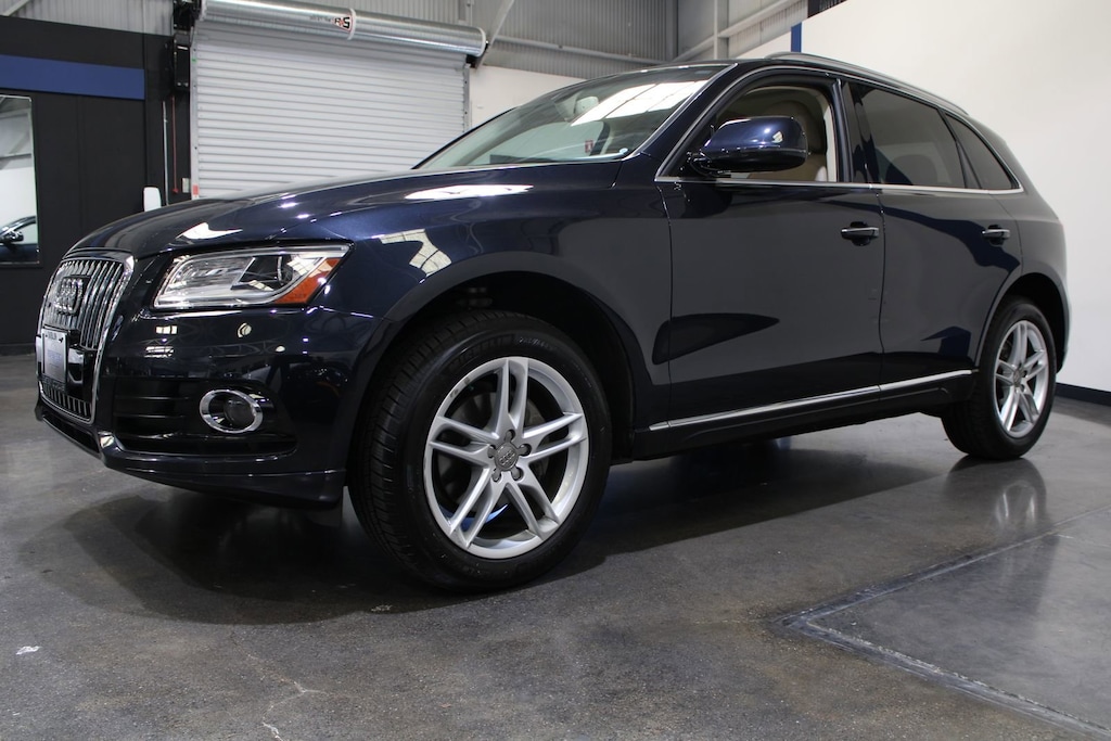 Clean CARFAX. Moonlight Blue 2016 Audi Q5 2.0T Premium Plus quattro quattro 8-Speed Automatic with Tiptronic 2.0L 4-Cylinder TFSI. Pistachio Beige Leather, 2-Position Driver Side Memory, 3-Step Heated Front Seats, Aluminum Trunk Edge Trim & Door Sills, Audi Advanced Key, Audi Connect w/Online Services, Audi Parking System Plus w/Rear View Camera, Audi Side Assist, Auto-Dimming Interior Mirror w/Digital Compass, Automatic temperature control, Color Driver Information System w/Trip Computer, Fine Grain Ash Natural Brown Wood Decorative Inlay, Front dual zone A/C, Front fog lights, Heated Auto-Dimming & Power-Adjustable Mirrors, High intensity discharge headlights: Xenon plus, Leather Seating Surfaces, Leather steering wheel, Power Front Bucket Seats, Power Liftgate, Power moonroof, Premium Plus Package, Radio: MMI Navigation Plus System, Rain sensing wipers, Rear air conditioning, Remote keyless entry, Security system, Speed control, Speed-Sensitive Wipers, Split folding rear seat, Steering wheel mounted audio controls, Technology Package, Telescoping steering wheel, Tilt steering wheel, Wheels: 8.0" x 19" 5-Arm Star Design. Recent Arrival! Odometer is 45679 miles below market average! 20/27 City/Highway MPG.