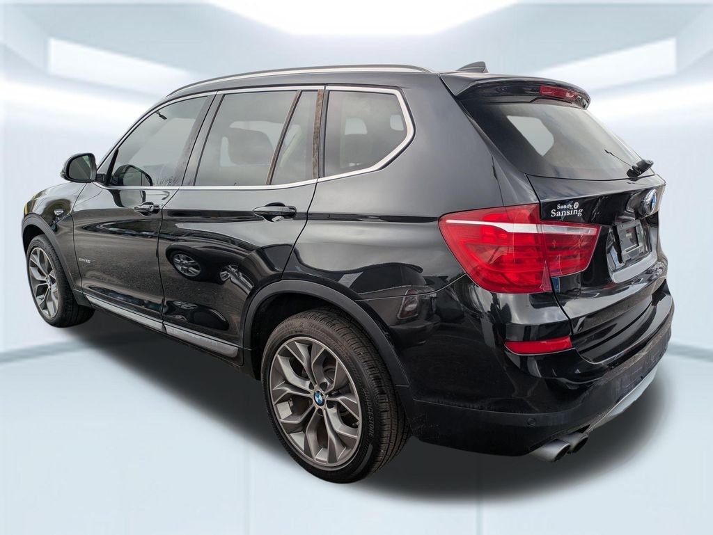 Priced below KBB Fair Purchase Price! 2016 BMW X3 sDrive28i Black Sapphire Metallic sDrive28i 8-Speed Automatic, 18" x 8.0" V Spoke (Style 307) Wheels, 3.39 Axle Ratio, 4-Wheel Disc Brakes, 9 Speakers, ABS brakes, Adaptive Light Control, Advanced Real-Time Traffic Information, Air Conditioning, Alloy wheels, AM/FM radio, Anti-Theft AM/FM Stereo CD/MP3 Player, Anti-whiplash front head restraints, Auto-dimming door mirrors, Auto-dimming Rear-View mirror, Automatic temperature control, BMW Online & BMW Apps, Bodyside moldings, Brake assist, Bumpers: body-color, Burl Walnut Wood Trim, CD player, Comfort Access Keyless Entry, Dark Copper High-Gloss Trim, Delay-off headlights, Driver door bin, Driver vanity mirror, Dual front impact airbags, Dual front side impact airbags, Electronic Stability Control, Emergency communication system: BMW Assist eCall, Four wheel independent suspension, Front anti-roll bar, Front Bucket Seats, Front Center Armrest, Front dual zone A/C, Front fog lights, Front reading lights, Fully automatic headlights, Garage door transmitter, Genuine wood console insert, Hands-Free Bluetooth & USB Audio Connection, HD Radio, Heated Front Seats, Hi-Fi Sound System, Illuminated entry, Leather steering wheel, Low tire pressure warning, Lumbar Support, Memory seat, Navigation System, Occupant sensing airbag, Outside temperature display, Overhead airbag, Panic alarm, Panoramic Moonroof, Park Distance Control, Passenger door bin, Passenger vanity mirror, Power door mirrors, Power driver seat, Power Front Bucket Seats, Power Liftgate, Power passenger seat, Power steering, Power windows, Radio BMW Professional, Radio data system, Rain sensing wipers, Rear anti-roll bar, Rear fog lights, Rear reading lights, Rear seat center armrest, Rear window defroster, Rear window wiper, Rear-View Camera, Remote keyless entry, Remote Services, Roof rack: rails only, Satellite Radio, Satin Aluminum Roof Rails, Security system, SensaTec Leatherette Upholstery, Speed control, Speed-sensing steering, Speed-Sensitive Wipers, Split folding rear seat, Spoiler, Sport steering wheel, Steering wheel mounted audio controls, Surround View, Tachometer, Telescoping steering wheel, Tilt steering wheel, Traction control, Trip computer, Turn signal indicator mirrors, Variably intermittent wipers.