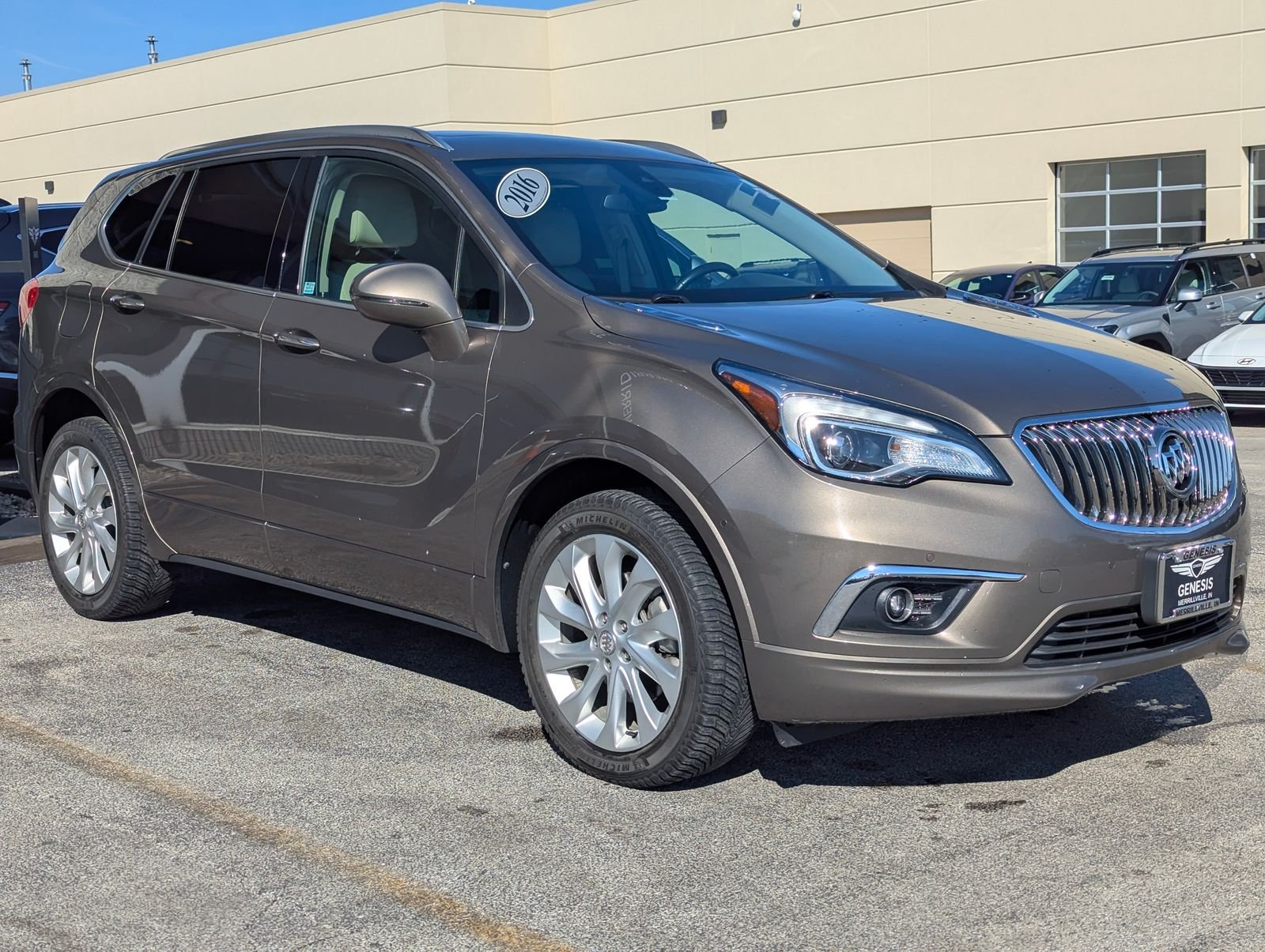 The 2016 Buick Envision Premium II represents the inaugural year of this premium compact crossover, specifically engineered to offer a library-quiet sanctuary and effortless performance. Positioning itself perfectly between the Encore and the Enclave, the Envision features a refined, sculpted exterior highlighted by signature chrome accents, LED daytime running lights, and distinctive 19-inch aluminum wheels. For those in Northwest Indiana, the Envision provides a high-end, composed driving experience that makes the journey from Crown Point to the lakefront as rewarding as the destination itself. At the heart of the Premium II is a punchy 2.0L Turbocharged 4-cylinder engine, delivering a stout 252 horsepower and 260 lb-ft of torque. This power is managed by a smooth 6-speed automatic transmission and Buicks advanced Intelligent Twin-Clutch All-Wheel-Drive system, which can preemptively adjust torque to individual wheels for maximum traction. To ensure a premium ride, it features HiPer Strut front suspension, which helps provide more responsive steering and effectively dampens road vibrations over weathered Region pavement. The 2016 Buick Envision Premium II is the ideal choice for the driver who values a tech-forward, whisper-quiet interior and the confidence of a turbocharged AWD powertrain, all wrapped in a timelessly elegant design.