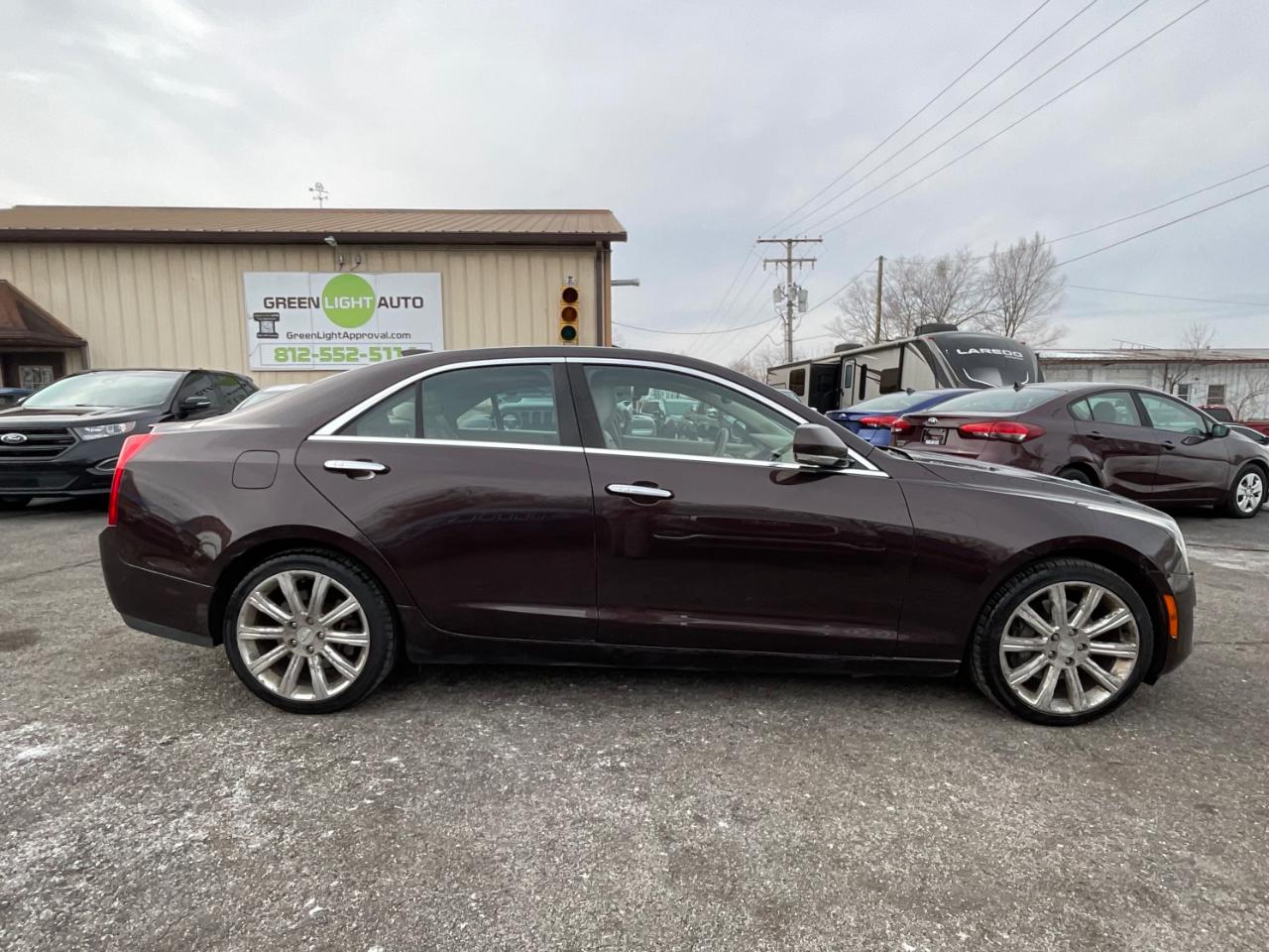 This brown Cadillac ATS Luxury is in perfect condition! Leather seats! This sedan is AWD and has an automatic transmission! Sunroof so that you enjoy the sunshine and fresh air during your drive! Press to start button! Backup camera with parking assist shows you the area behind the vehicle and alerts you when an obstacle gets in the way! Navigation system! Dual climate control lets you and your passenger set your own temperatures to make the ride more comfortable for everyone! Heated seats and steering wheel! Touchscreen radio with Bluetooth audio, SiriusXM, an auxiliary input, and USB ports for easy music enjoyment while on the road! Voice recognition! Apple CarPlay mirrors your smartphones messages, apps, and navigation onto the vehicle's display screen for convenient phone access! Pandora music app! Weather and traffic apps keep you updated on the latest road conditions! Power outlets! Sport, tour, and snow/ice driving modes lets you tailor your vehicle’s performance to match road conditions! Floor mats! Valet mode helps protect your privacy and belongings when someone else is behind the wheel!