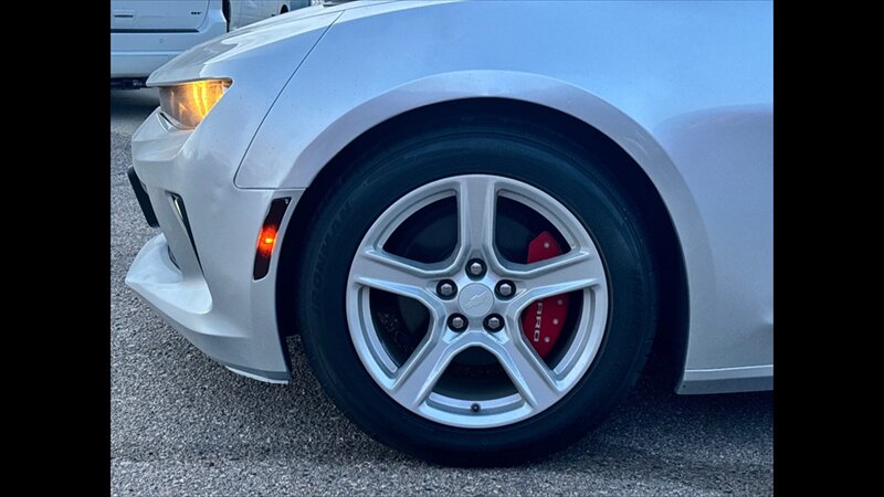 The 2016 Chevrolet Camaro LT 2-Door Coupe in Silver Ice Metallic offers a sporty driving experience with a 3.6L V6 engine and rearview camera. This vehicle features automatic climate control, leather steering wheel trim, and a cloth upholstery. The Camaro LT combines classic American styling with modern technology, including Bluetooth, Apple CarPlay, and Android Auto.