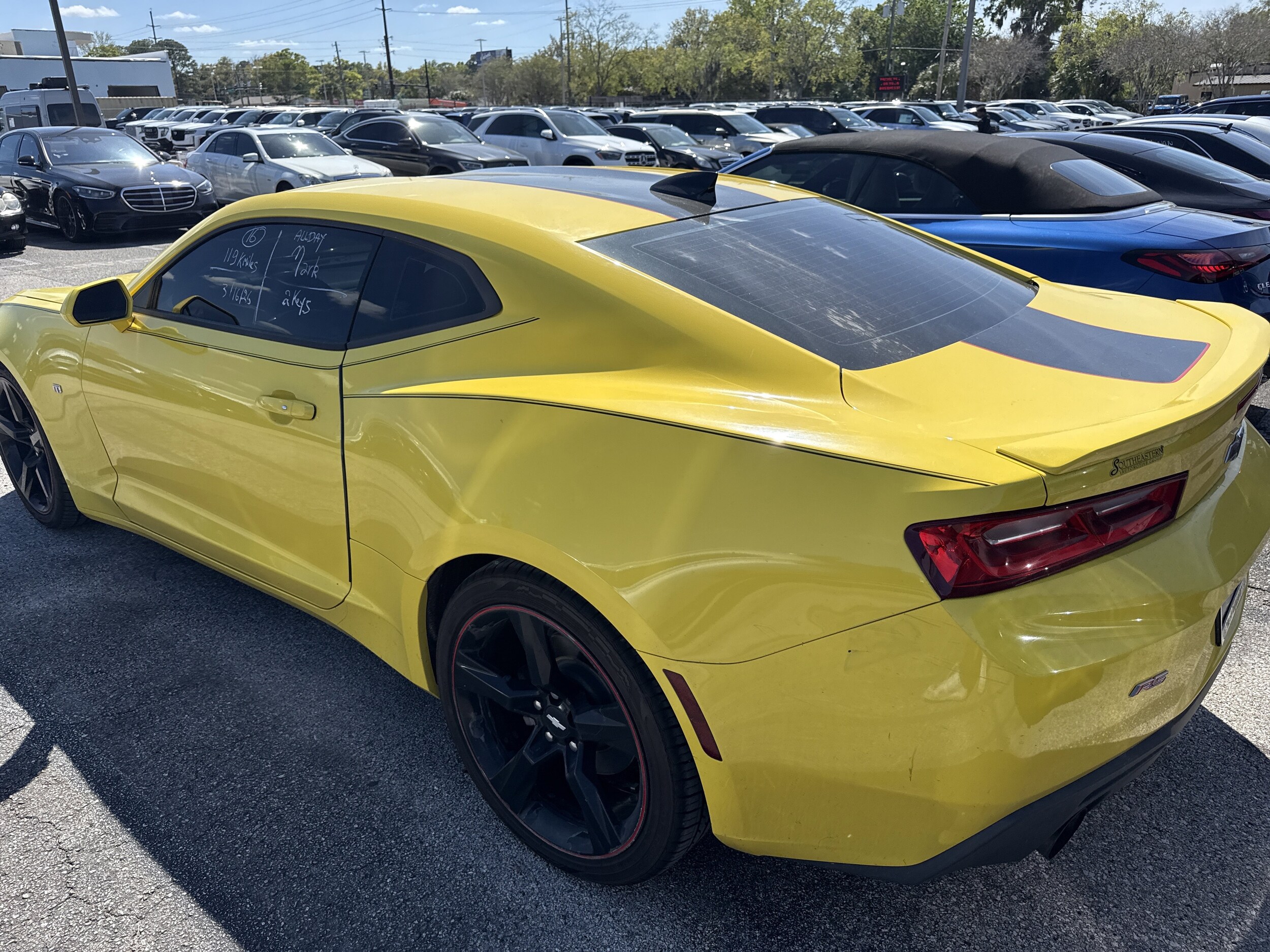 1LT RWD. Bluetooth is a registered mark of Bluetooth SIG, Inc, Backup camera, power package - power windows and door locks dual power seat, Apple CarPlay Android Car, alloy wheels, sound package - Sirius XM Satellite Radio, Mercedes Me Connect. Preferred Equipment Group 1LT, RS Package (Decklid Mounted Lip Spoiler, High-Intensity Discharge Headlamps, and Wheels: 20" 5-Split Spoke Machined-Face Aluminum), 18" Silver-Painted Aluminum Wheels, 2.77 Rear Axle Ratio, 4-Wheel Disc Brakes, 6 Speakers, ABS brakes, Air Conditioning, Alloy wheels, AM/FM radio: SiriusXM, Apple CarPlay, Automatic temperature control, Black Front & Rear Bowtie Emblems (LPO), Brake assist, Bumpers: body-color, Cloth Seat Trim, Compass, Delay-off headlights, Driver door bin, Driver vanity mirror, Dual front impact airbags, Dual front side impact airbags, Electronic Stability Control, Emergency car communication system, Exterior Parking Camera Rear, Four wheel independent suspension, Front anti-roll bar, Front Bucket Seats, Front Center Armrest, Front fog lights, Front reading lights, Front Sport Bucket Seats, Fully automatic headlights, Illuminated entry, Knee airbag, Leather Shift Knob, Low tire pressure warning, Occupant sensing airbag, Overhead airbag, Panic alarm, Passenger door bin, Passenger vanity mirror, Power door mirrors, Power driver seat, Power passenger seat, Power steering, Power windows, Premium audio system: Chevrolet MyLink, Premium Carpeted Floor Mats, Radio data system, Radio: AM/FM w/Chevrolet MyLink, Rear anti-roll bar, Rear window defroster, Remote keyless entry, Remote Vehicle Starter System, Security system, SiriusXM Satellite Radio, Speed control, Speed-sensing steering, Steering wheel mounted audio controls, Tachometer, Telescoping steering wheel, Tilt steering wheel.