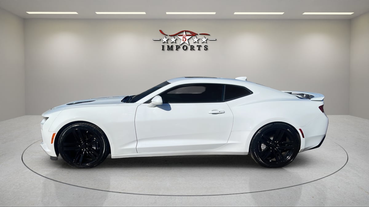 The 2016 Chevrolet Camaro 2dr Cpe 2SS in Summit White embodies a perfect blend of power, style, and modern engineering. This lean machine comes equipped with a robust 6.2L V8 engine, delivering exhilarating performance that promises to thrill every driving enthusiast. The 8-speed automatic transmission ensures a smooth yet responsive ride, effortlessly harnessing the engine's immense power on demand. Set against the sleek and striking Summit White exterior are LPO 20" (50.8 cm) 5-split spoke low gloss black wheels that add a touch of aggressive sophistication. Magnetic ride control offers an advanced suspension system that adapts to road conditions for unparalleled handling and comfort. The dual-mode performance exhaust not only heightens auditory pleasure but also enhances engine efficiency for a supreme driving experience. Inside, the Camaro's Jet Black interior provides an ambiance of sporty elegance and comfort, creating the perfect backdrop for the driver-focused layout. A power sunroof invites natural light into the cabin, enhancing the driving experience with an open-air feel without compromising the coupe's aerodynamic integrity. Add to that the array of modern conveniences the Camaro has to offer, and you have a technologically equipped cockpit designed for the modern driver.