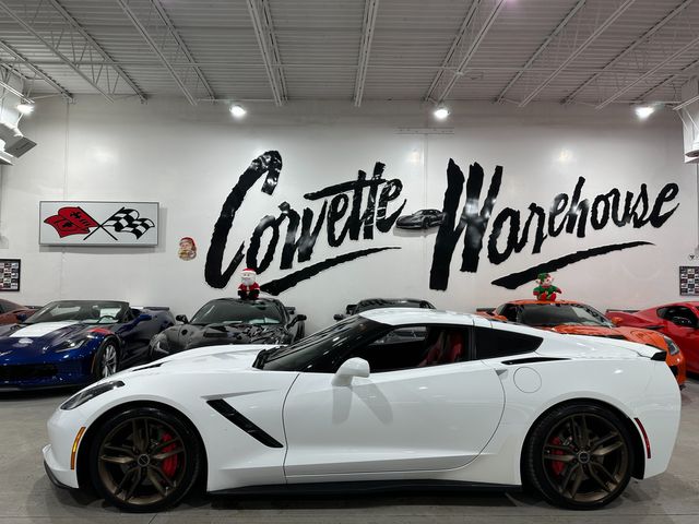 Gorgeous loaded up White on Red C7 7-Speed Coupe with lots of eyeball and extras! Engine: 6.2L LT1 V8 producing 455 hp / 460 lb-ft torque. 0–60 mph: 3.8 seconds. Quarter Mile: 12.0 seconds @ 119 mph. Top Speed: 186 mph. Curb Weight: 3,298 lbs. 40,689 Corvettes were produced in 2016. 26,414 were Stingray's. Only 2,152 Z51 Coupes in Arctic White were produced in 2016. This C7 2016 Arctic White / Adrenaline Red Leather Chevrolet Corvette Stingray Coupe comes loaded up with the 2LT Preferred Option Package, Z51 Performance & Suspension Option, FE4 Magnetic Selective Ride Control, UQT Performance Data and Video Recorder, Q7E Bronze Magnesium Aluminum Wheels, J6F Red Painted Calipers, ERI Battery Protection Package, MGW Short Throw Shifter, Kooks Headers, Kooks X-Pipe, and a Oil Catch Can. It is in excellent showroom condition and has been highly maintained.