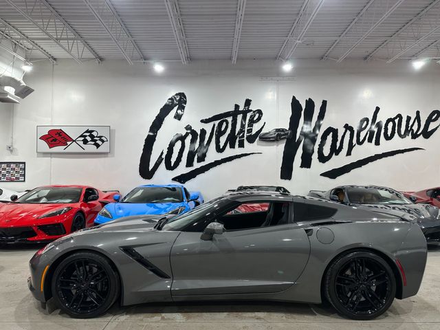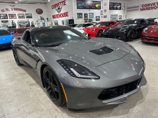 2016 Shark Gray Metallic / Jet Black Leather Chevrolet Corvette Stingray Coupe comes loaded up with the 3LT Preferred Equipment Group ($9,745), Z51 Performance & Suspension Package ($5,000), IL6 Seat Trim Processing Code ($395), C2Z Visible Carbon Fiber Roof Panel ($1,995), the Coveted 7-Speed Manual Transmission, VK3 License Plate Bracket, Front, and the NPP Dual-Mode High Performance Exhaust with Only 11k Miles! One-Owner / Perfect Carfax! Engine: 6.2L LT1 V8 producing 455 hp / 460 lb-ft torque. 0–60 mph: 3.8 seconds. Quarter Mile: 12.0 seconds @ 119 mph. Top Speed: 186 mph. Curb Weight: 3,298 lbs. 40,689 Corvettes were produced in 2016. 26,414 were Stingray's. Only 2,856 Coupes in Shark Gray Metallic were produced in 2016.